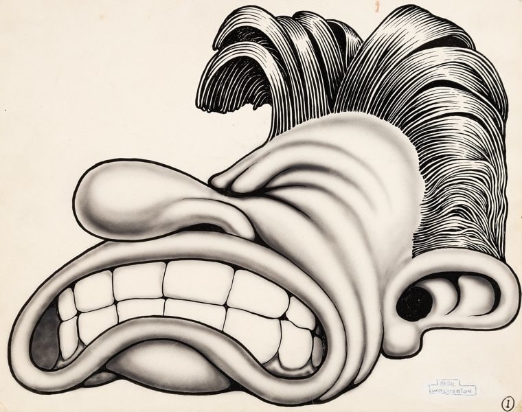 Ink and airbrush over graphite on Bristol board. Image area, 14.5" x 11.5". From the Eric Sack Collection.