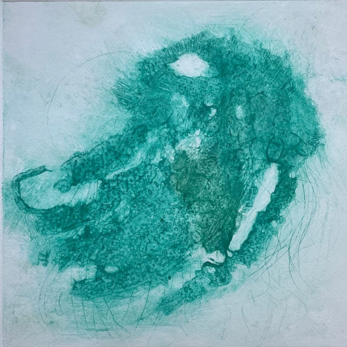 In my Encaustic etching Collagraph, titled "Black Sea Nettle Jellyfish," I sought to capture the captivating essence of the Chrysaora Achlyos, commonly known as the Black Sea Nettle Jellyfish. What enthralled me about this remarkable creature was its graceful and fluid movement through the ocean's depths.