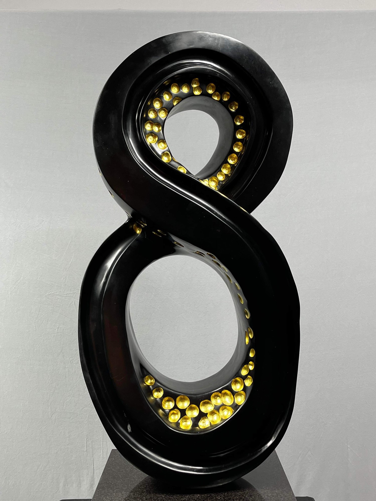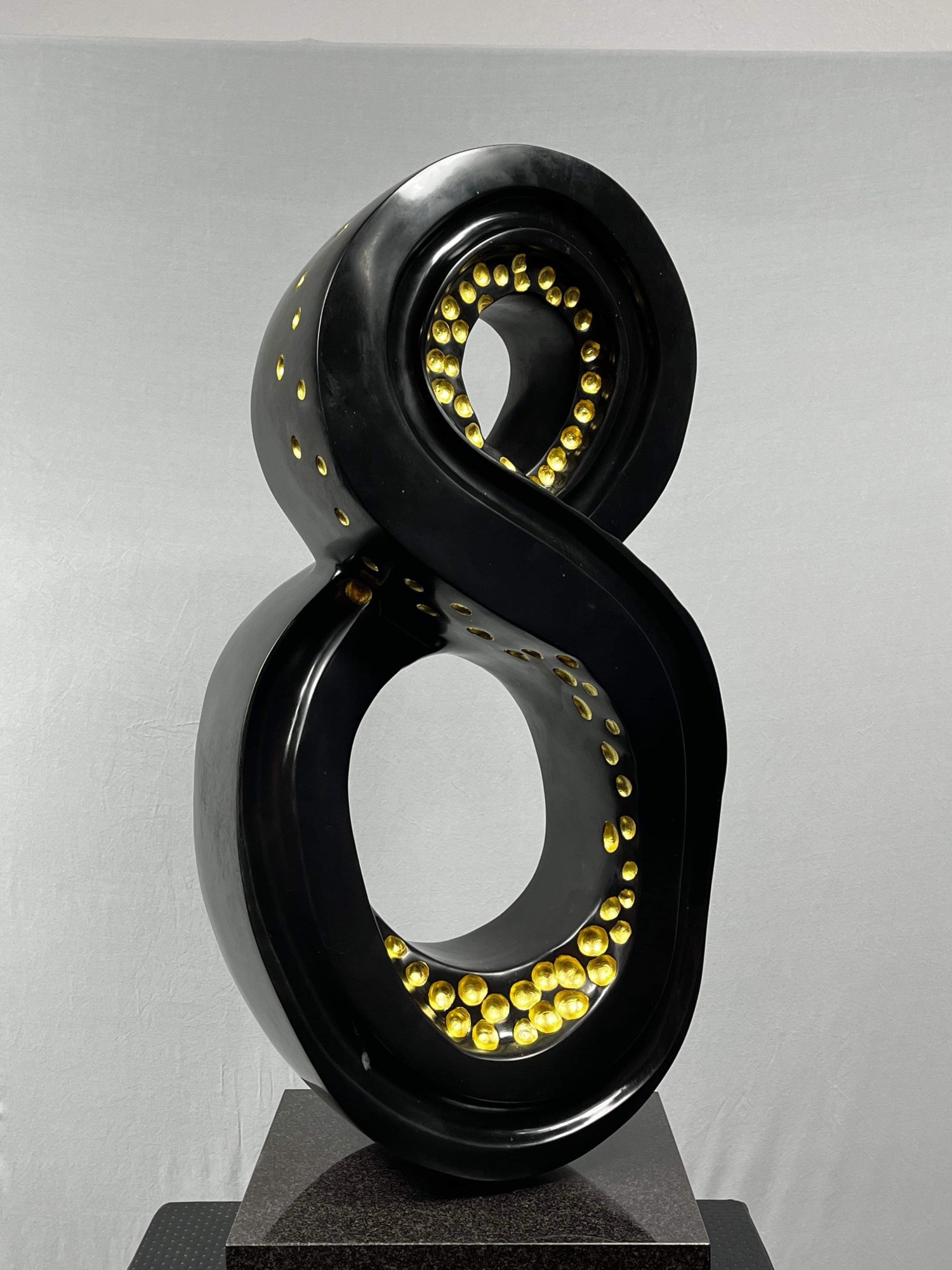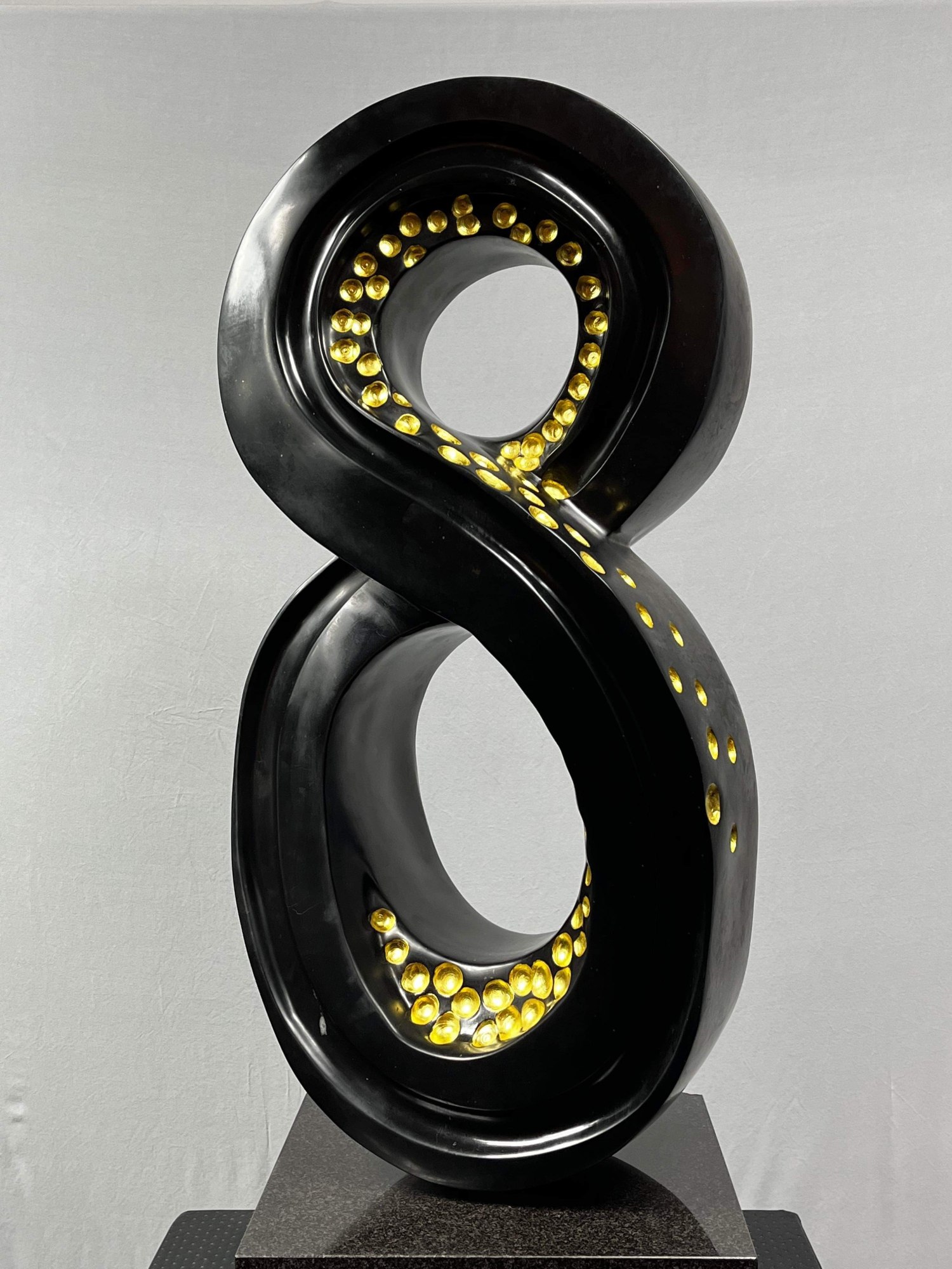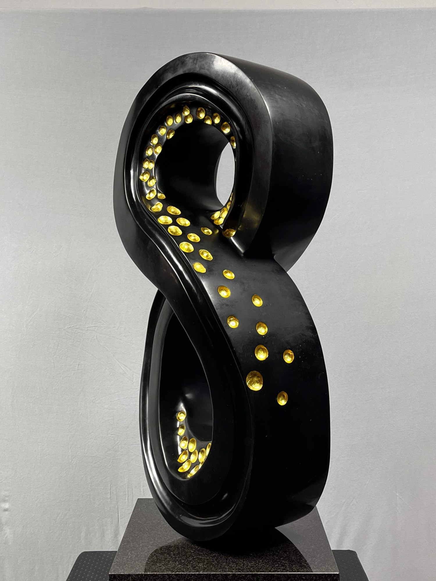 "Lucky 8", a gorgeous contemporary sculpture created by Scott P. Gentry, was inspired by numerology and Chinese culture. The number 8 is a symbol of balance with its symmetrical shape. For every blessing it receives, it puts another back out into the universe. In Chinese culture, the number 8 is considered the luckiest of all and Scott chose to add the gold leaf as a symbol of both beauty and prestige.