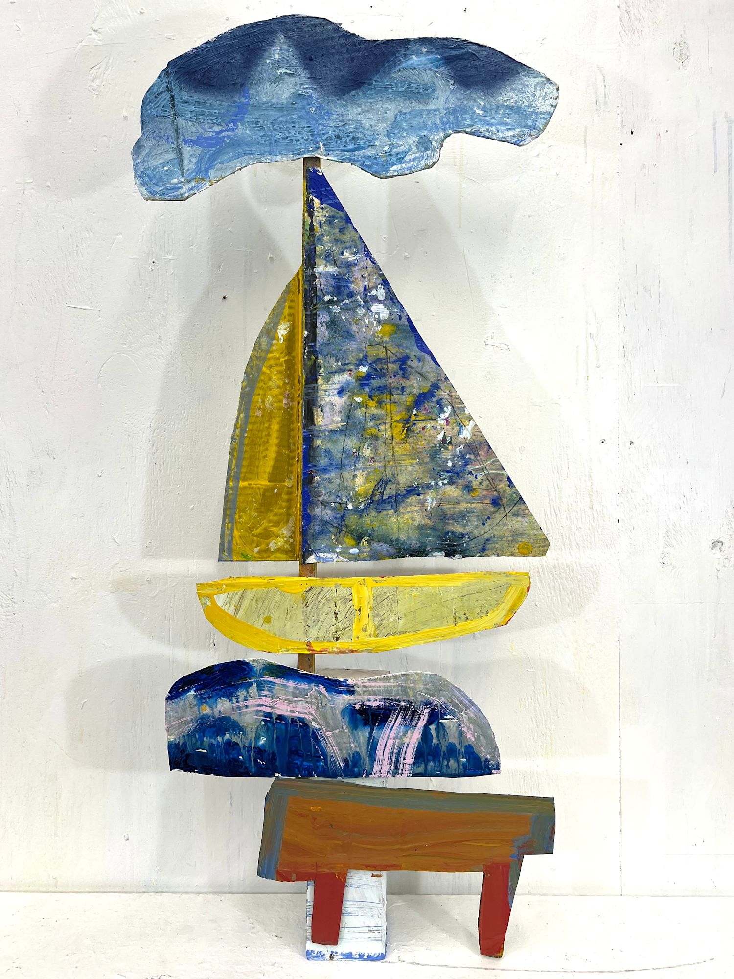 • Acrylic paint, pencil, oil paste, clear expoxy on cardboard mounted on wood armature and base.