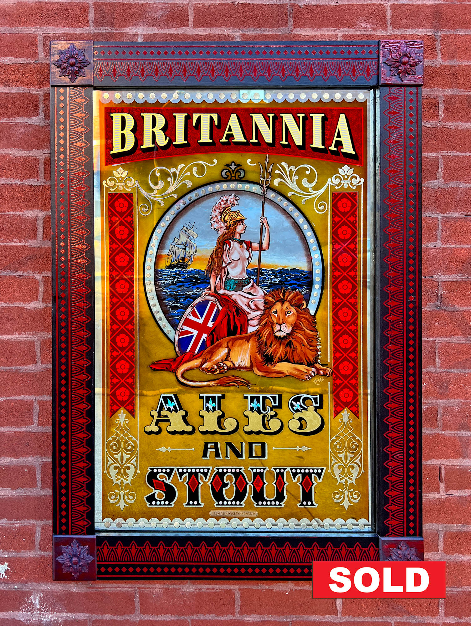 Verre Eglomise: this piece has been painted with silver stain and traditional stained glass fired paints as well as cold enamels and 23k gold leaf..Blast etching and abalone as well as a bespoke painted wood frame.