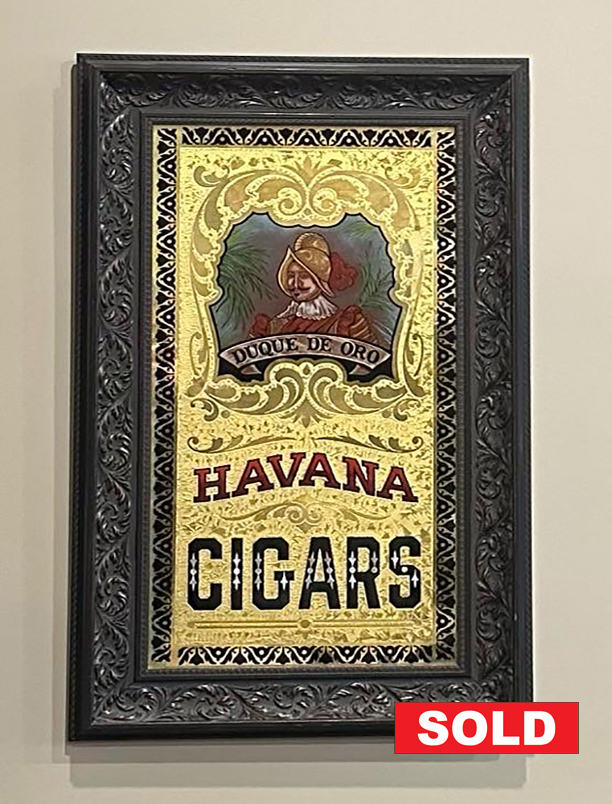 Bespoke sign inspired by 19th century glue chipped glass by the historic Rawson & Evans Company. A fantasy sign made for a collector. Glue chipped, revers painted, and gilded with 23k gold leaf. Abalone details.