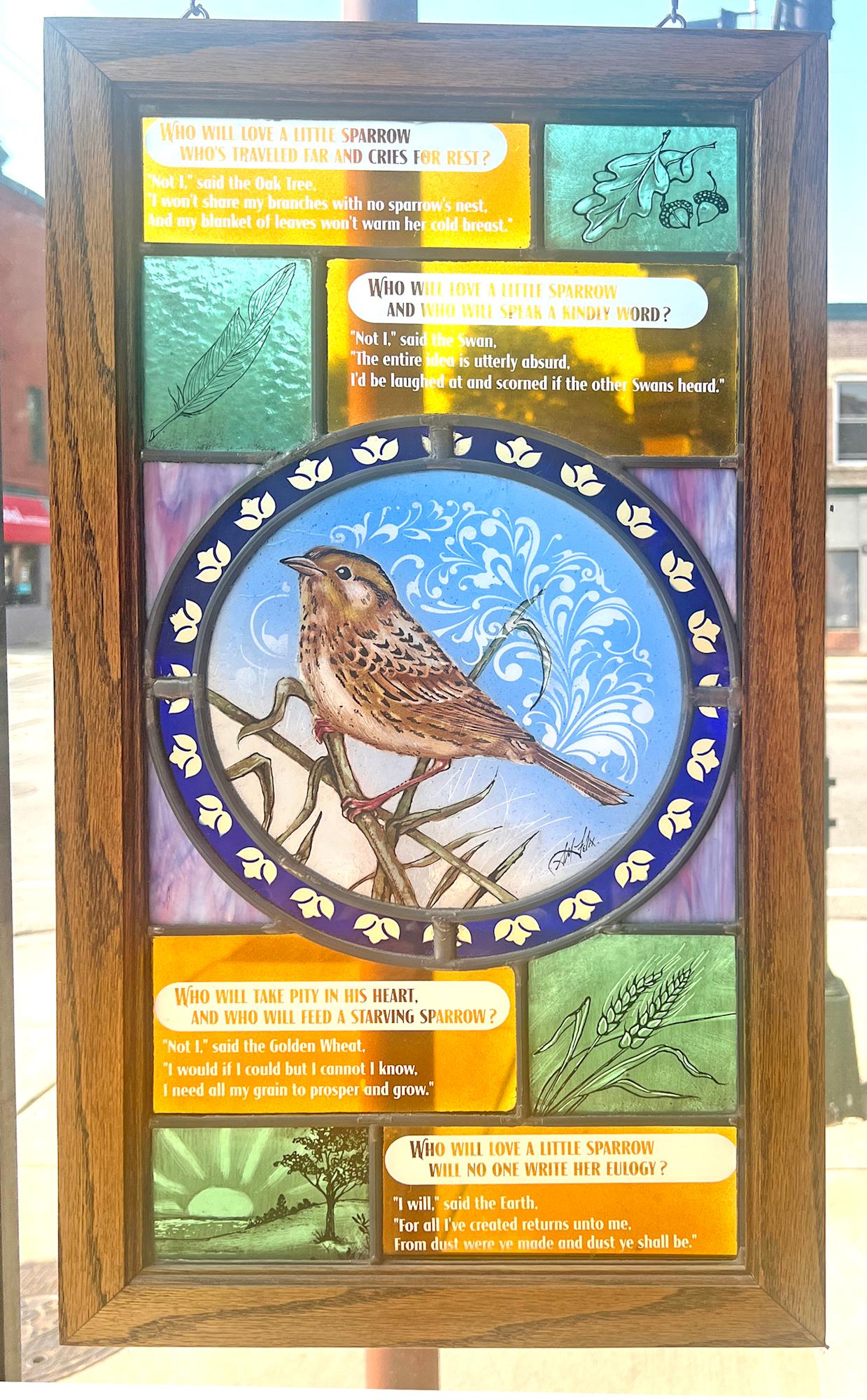 Sparrow by Sean Michael Felix  Image: Fire painted stained glass.
