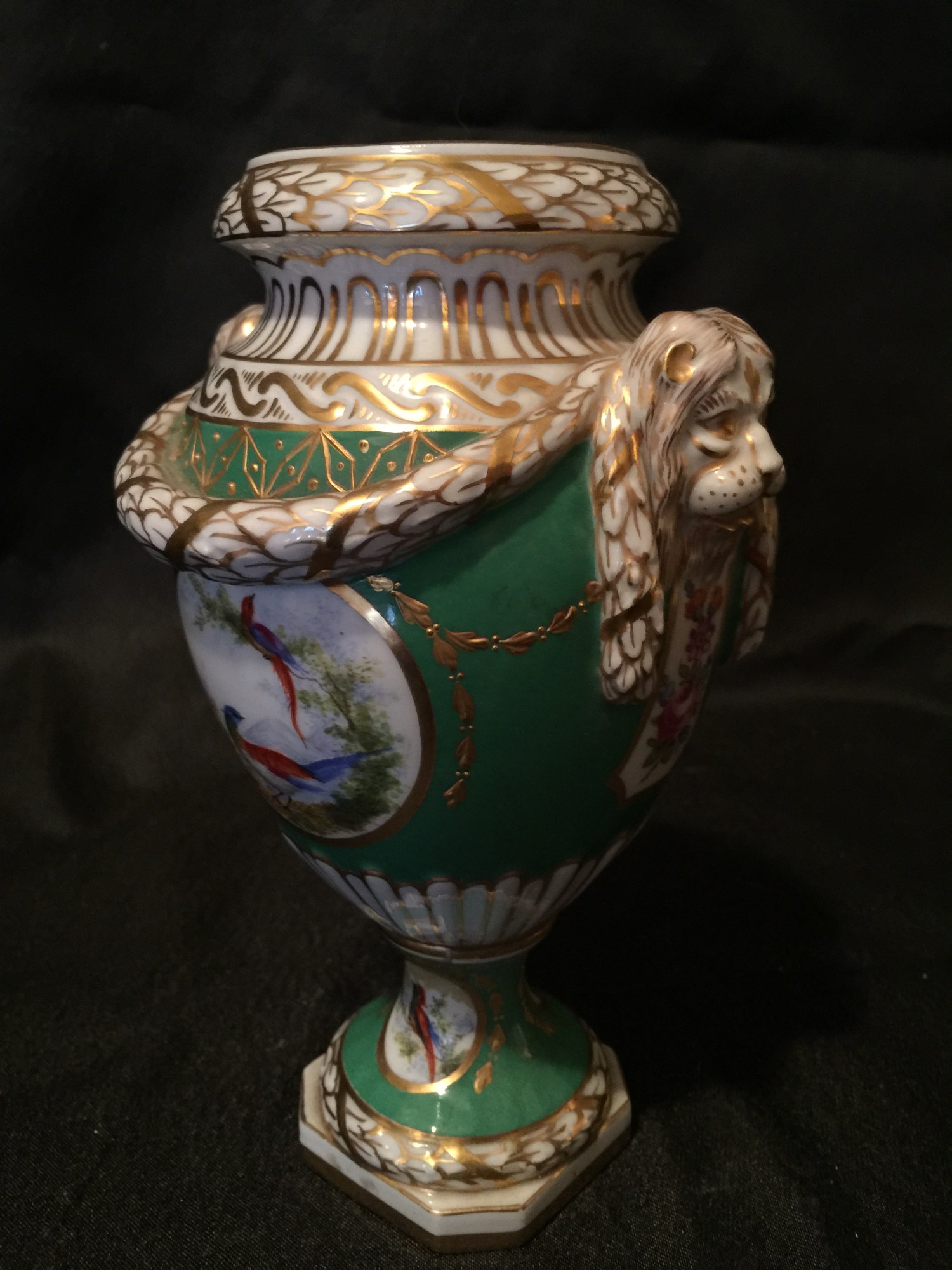 English, Sèvres-style Green-ground Vases with Ornithological Motifs in Reserves (Damages), 19thC