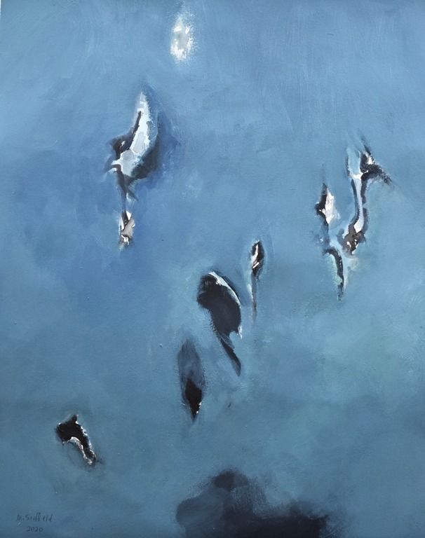 Scoffield's artwork takes a critical view of social, political, and cultural issues. Often referencing professional sports, his work explores the varying relationships between the Black community, sports media, and its industry.