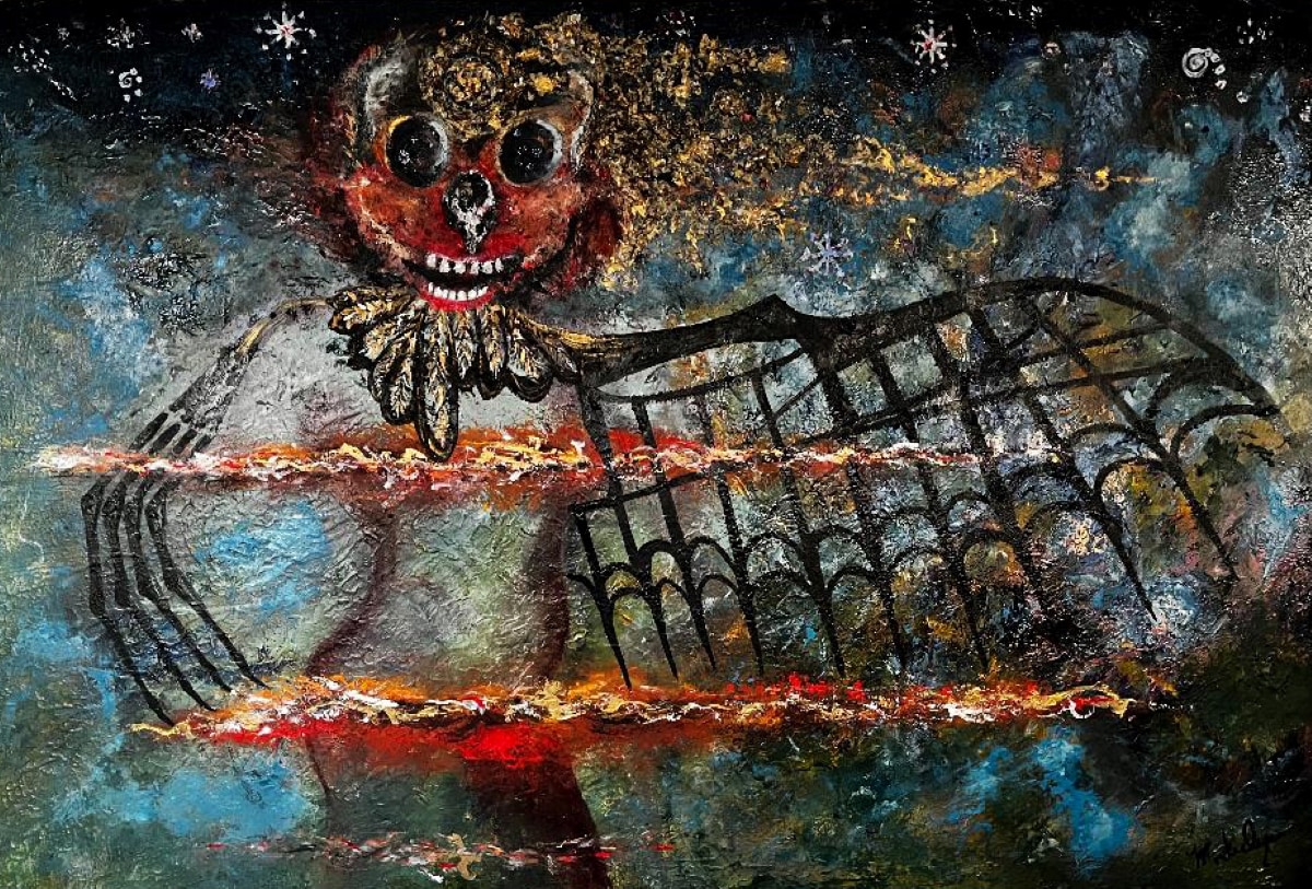 a woman is shapeshifting into a bird, her arms become wings, in the ilk of DaVinci's Flight Codex drawings