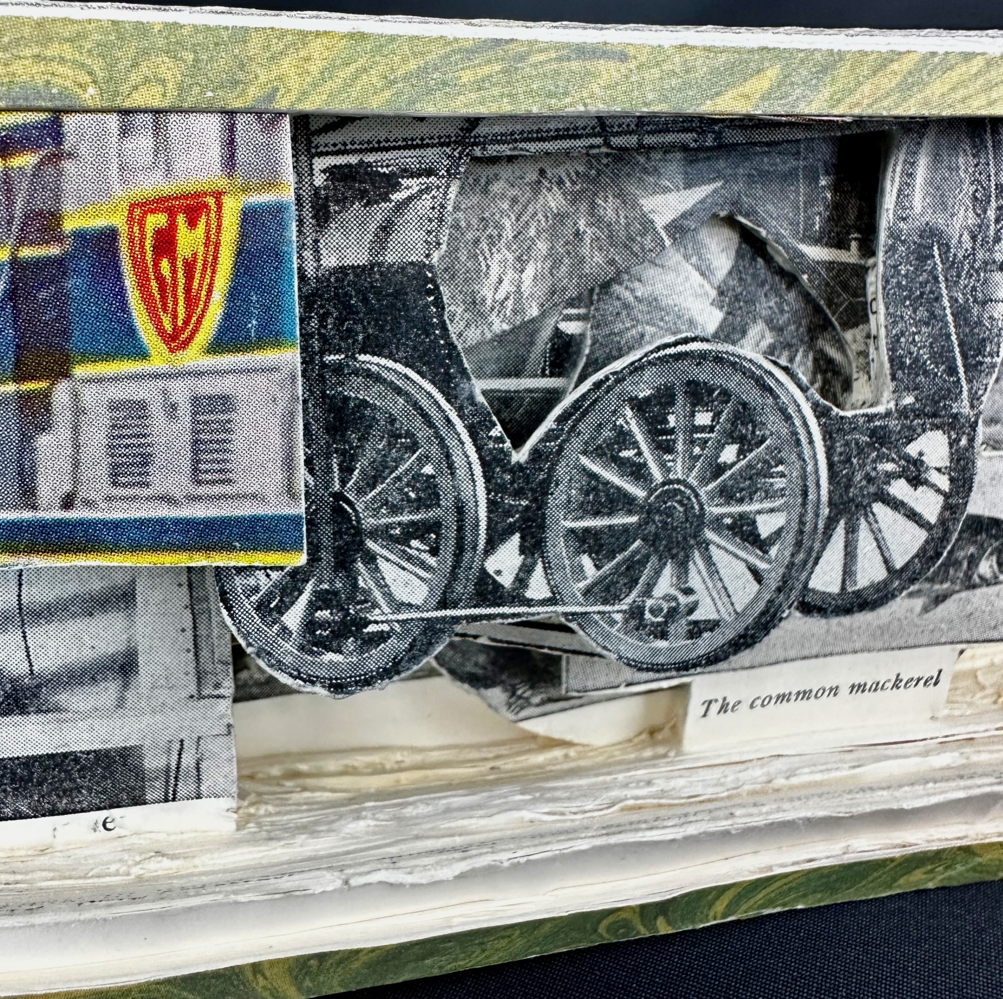 Shane uses aged reference books deemed useless, like medical guides, journals, and encyclopedias, to bring new life to books that would otherwise be discarded. Glue seals the pages in their original printed location decided by the publisher, leaving the page revelations to the artist's imagination. Layers are removed to reveal images randomly. With no plan, the artist simply finds an exciting image, carves around the photo, diagram, or drawing, and adds cut lines, insets, and other random elements to provide an artistic view into the past, the book, and the pages as intended by the printer. Exposing the images in their original form, location, and placement on the page gives the viewer a greater appreciation of printed material from the Gilded Age when print media was mass-produced and information became readily available before today's digital format. Each page is carved delicately with stainless steel hardened medical scalpels to create a three-dimensional effect.