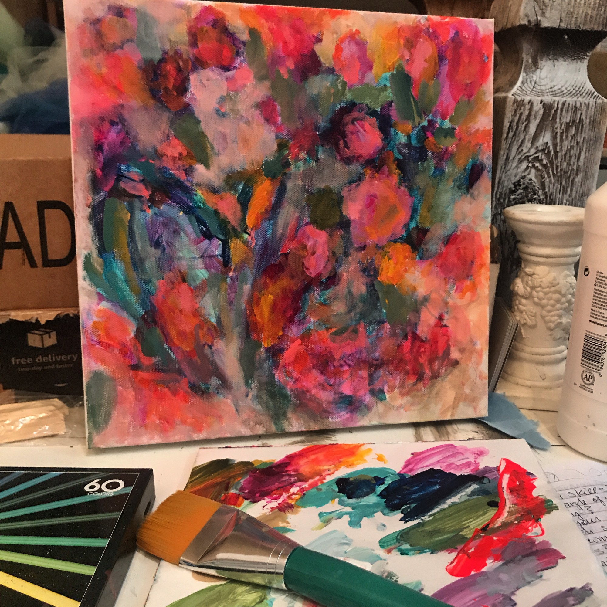 This adorable abstract floral is full of beautiful pinks, purples, and blues. It will make the day of that special someone. The gift of flowers that never fade.