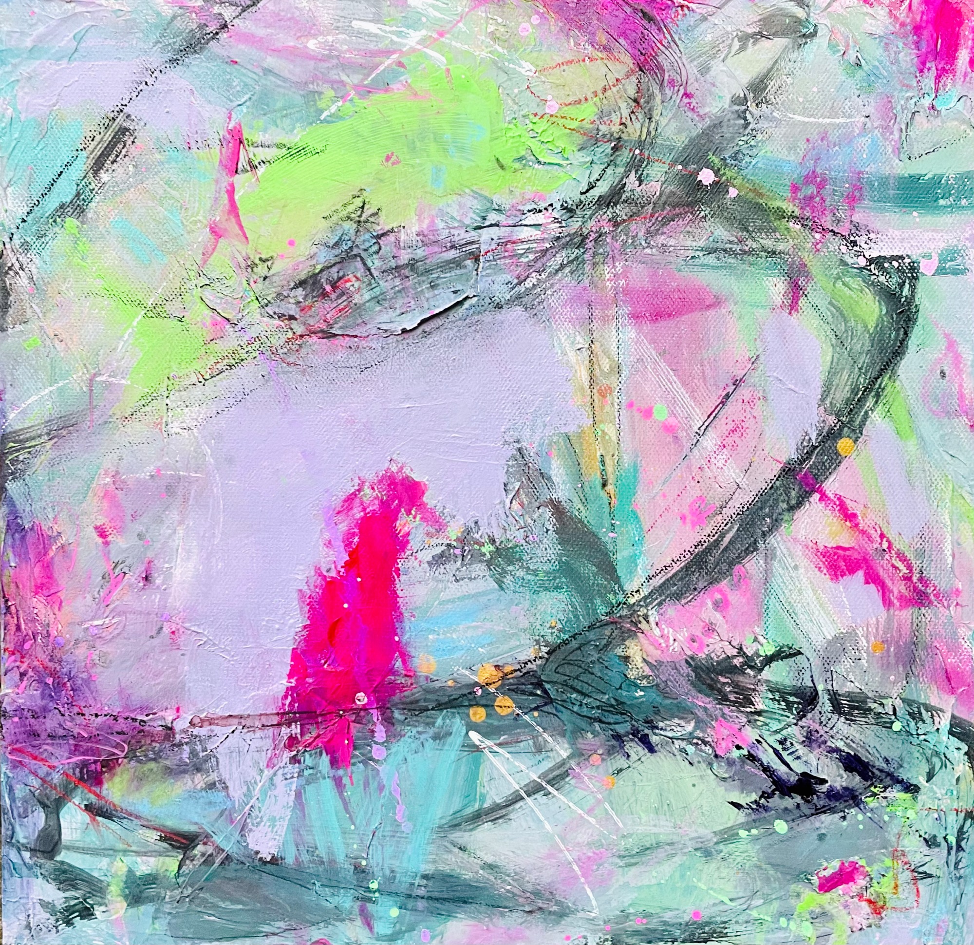 Turquoise, lavender, and pops of fuchsia...sure to add some life to any space. What do you see here? That's the fun of it...to bring your own perspective to the party!