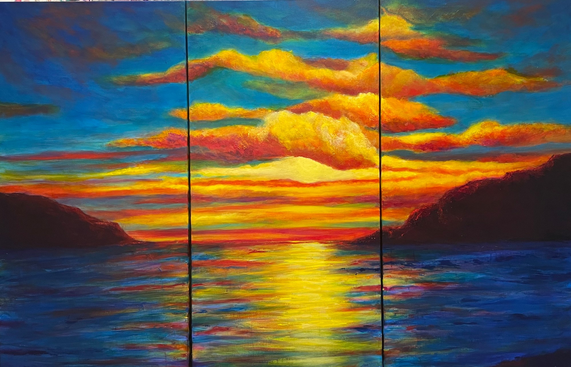 This 3 canvas dramatic sunset is a commissioned piece created specifically for a collector.
