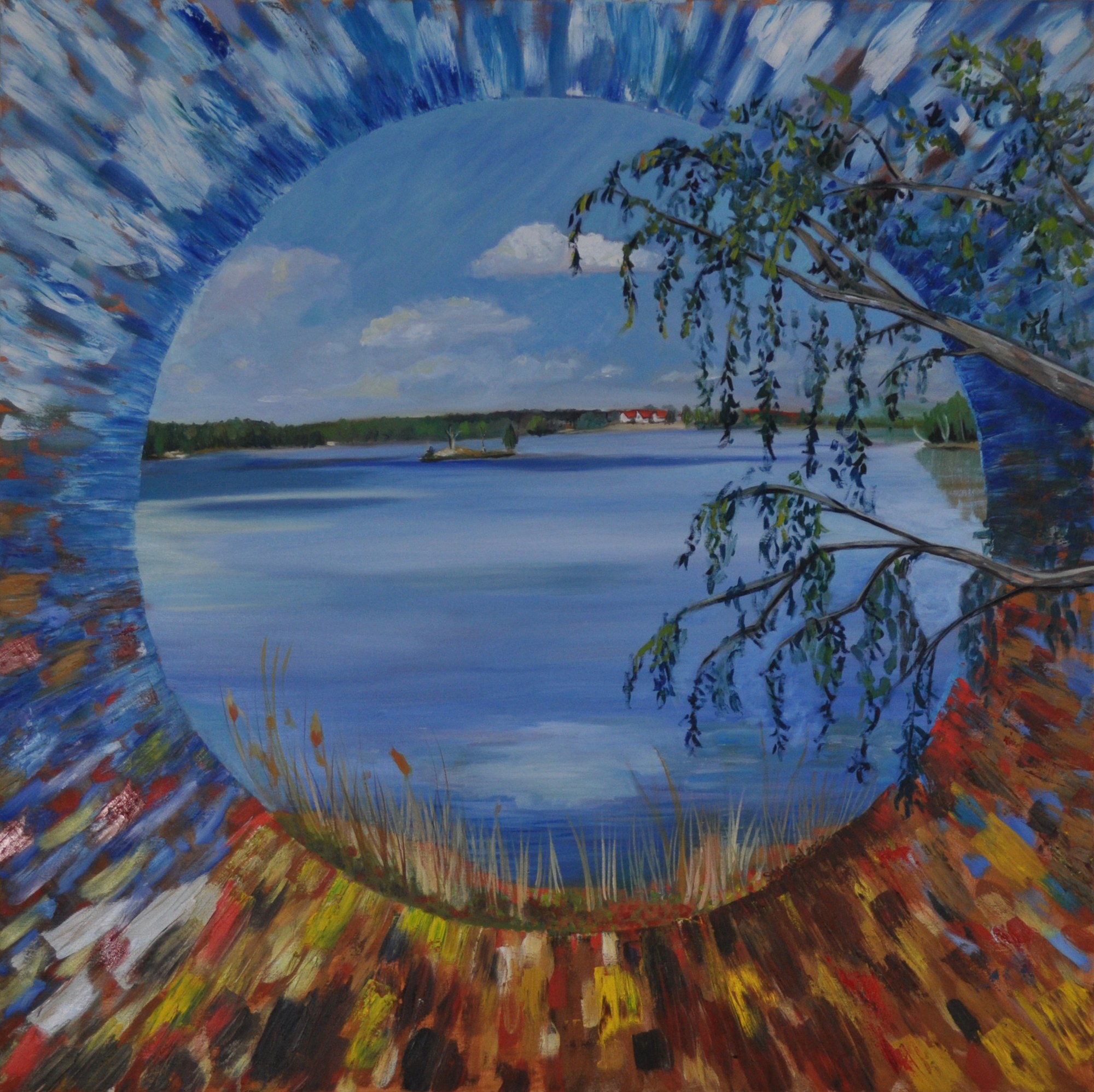 This piece was commissioned to hang in a psychologist office. The centred area of the painting provides visual peace to the viewer. This piece represents a persons ability to find calm in chaos.