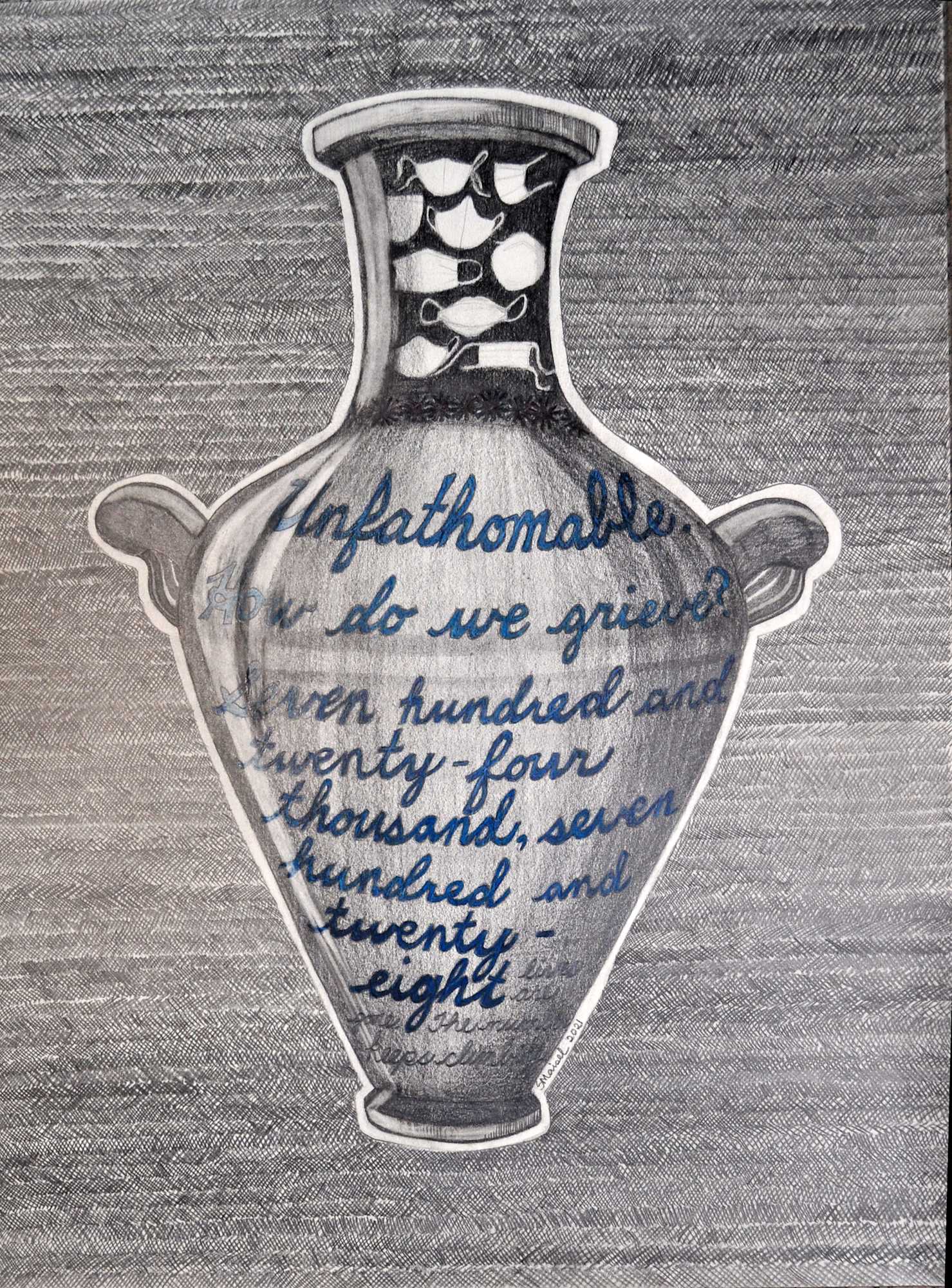 The tragedy pot series expresses my dismay with current events. This one is about the pandemic and the US response to the number of deaths that continued to rise.
