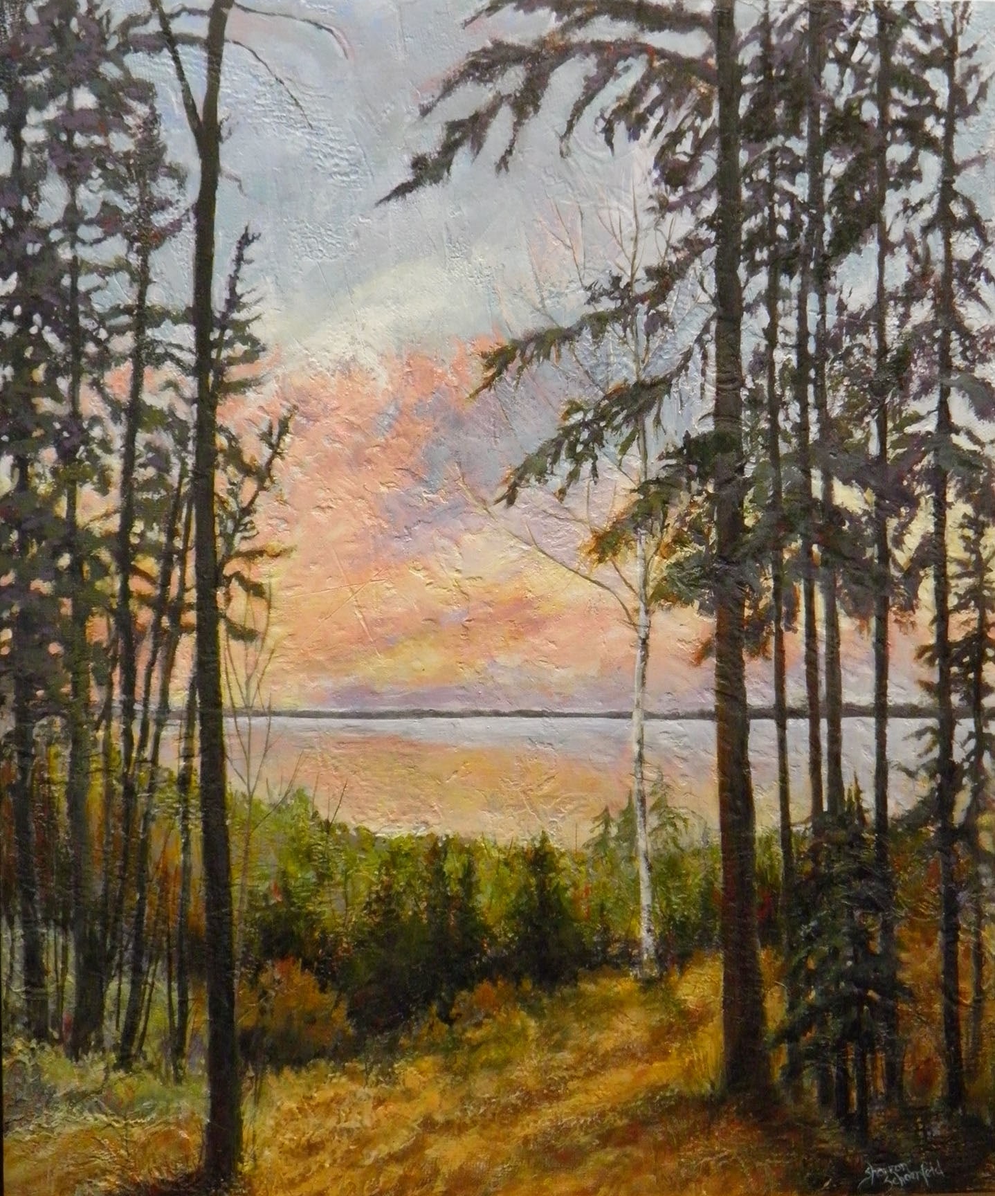 We often walk down to the beach in the evening to watch the sun setting on the far shore of East Trout Lake. The sun casts a warm golden glow on our shoreline and colours the sky as it dips below the horizon.