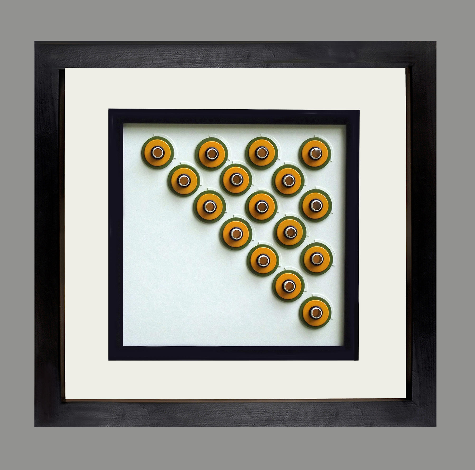 MessageLight emerges from the center of each brass tube, casting a soft halo around the precisely arranged forms. This internal illumination transforms each unit from a static object to a radiant cell, hinting at energy held within restraint. The geometric progression remains grounded in material presence, but the glow introduces a quiet pulse—a suggestion of life, or thought, or time unfolding. Precision is not merely visual; it becomes luminous, animating the grid with both logic and mystery.