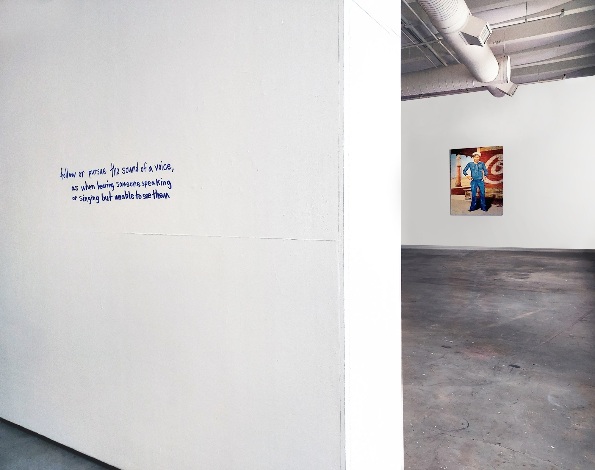 The stark white wall marked with blood-red, dripping letters spelling “WAKURÎRÂRAT” strikes like an unhealed wound, both a presence and a call. In Pawnee, the word means “Follow or pursue the sound of a voice, as when hearing someone speaking or singing but unable to see them,” evoking longing, search, and partial connection. The phrase hangs visibly yet elusively, suggesting voices that colonial history has attempted to silence or disappear. This tension is amplified by the sound composition from Warren Realrider (Pawnee, Crow) and Nathan Young (Delaware, Pawnee, Kiowa), whose improvised noise, drone, and fragmented melody invite listeners to “follow” unseen voices through space. Their shared sonic language, rooted in family ties and Oklahoma Native experience, resonates with concepts of disappearance, freedom, Black activism, and ancestral memory. Together, text and sound create a haunting encounter, urging viewers to move beyond visual surfaces and listen deeply to what has been muted yet endures.