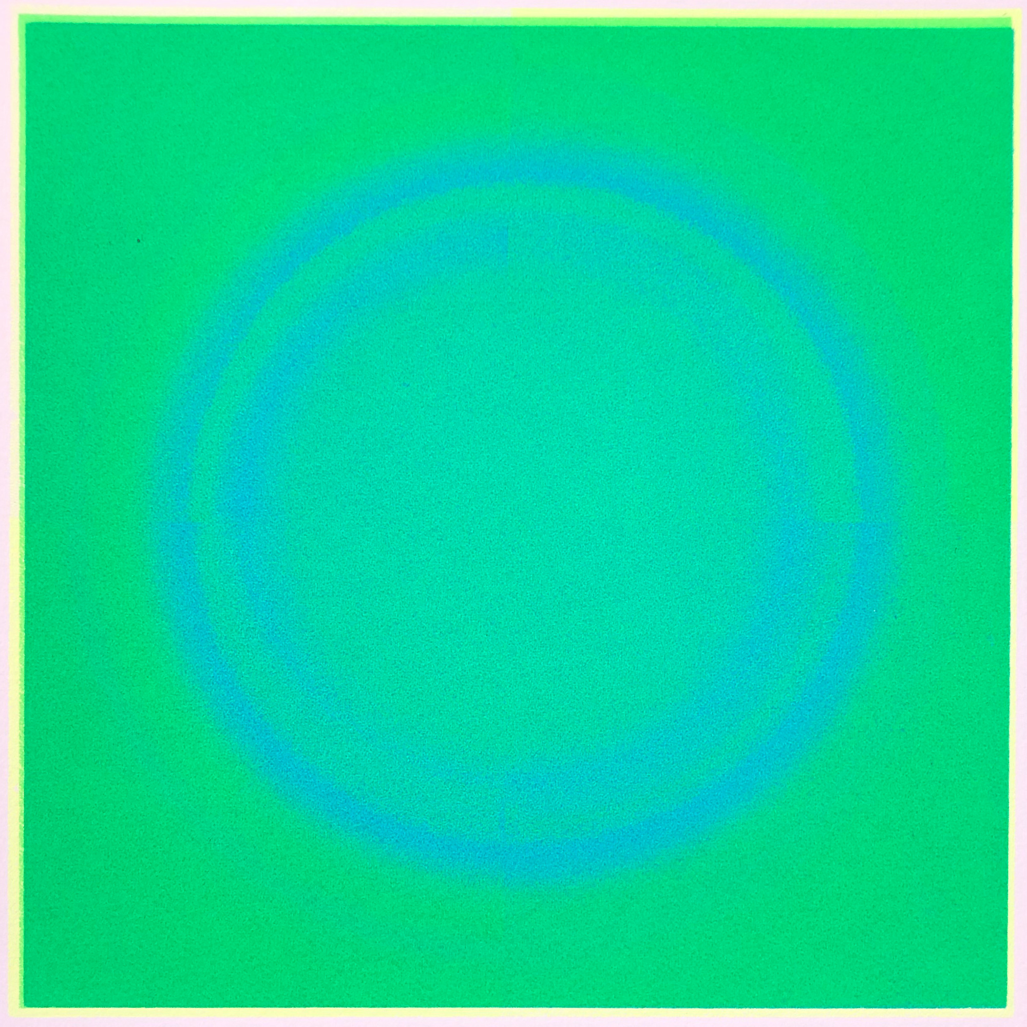 This silkscreen print of an abstract colour circle is inspired by quantum physics, and presented in white frames and explores the interaction of colours in an abstract form.