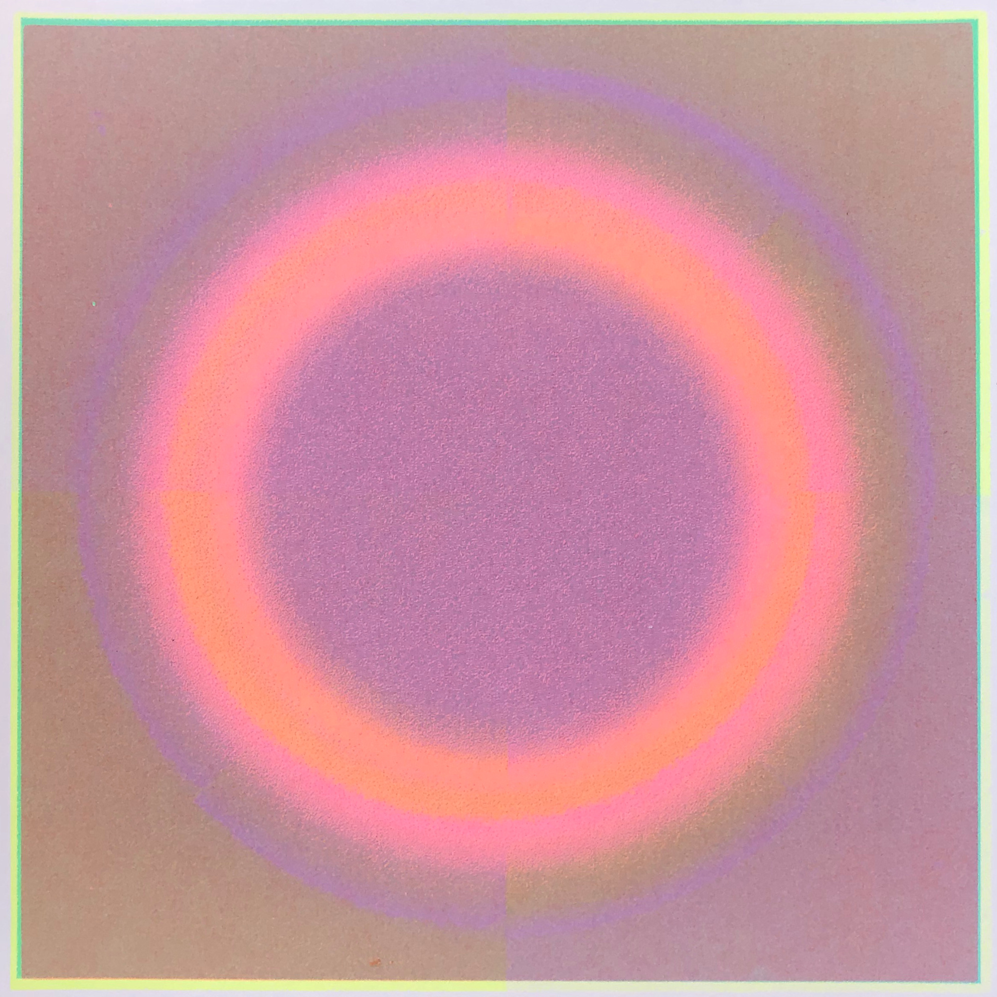 This silkscreen print of an abstract colour circle is inspired by quantum physics, and presented in white frames and explores the interaction of colours in an abstract form.