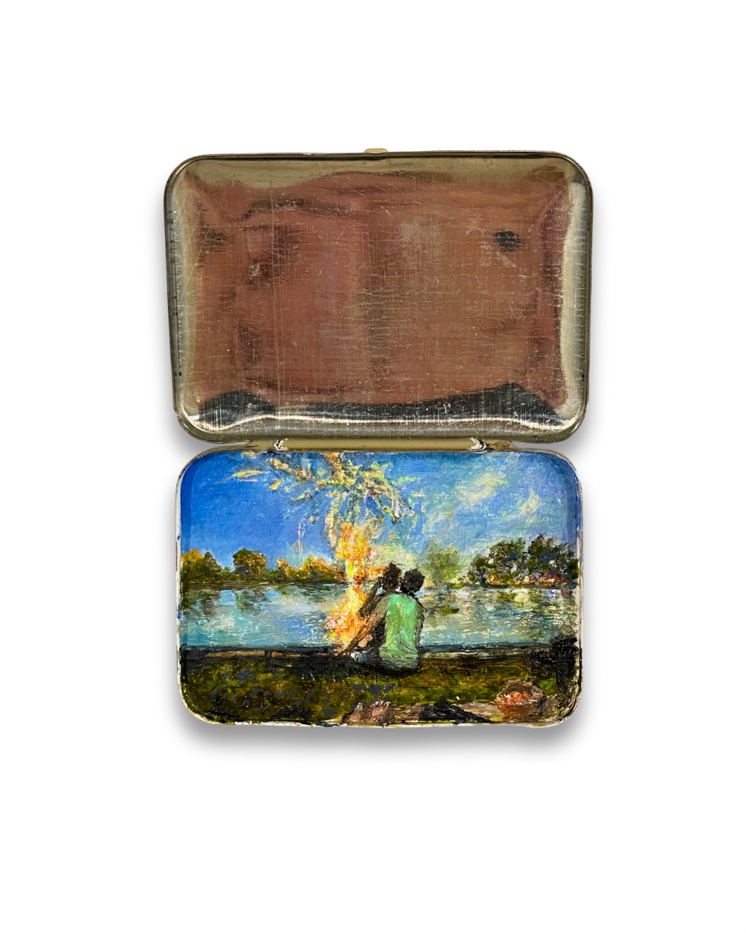 Oil landscape in tiny vintage Spartan Aspirin medicine tin, to soothe and comfort the viewer.