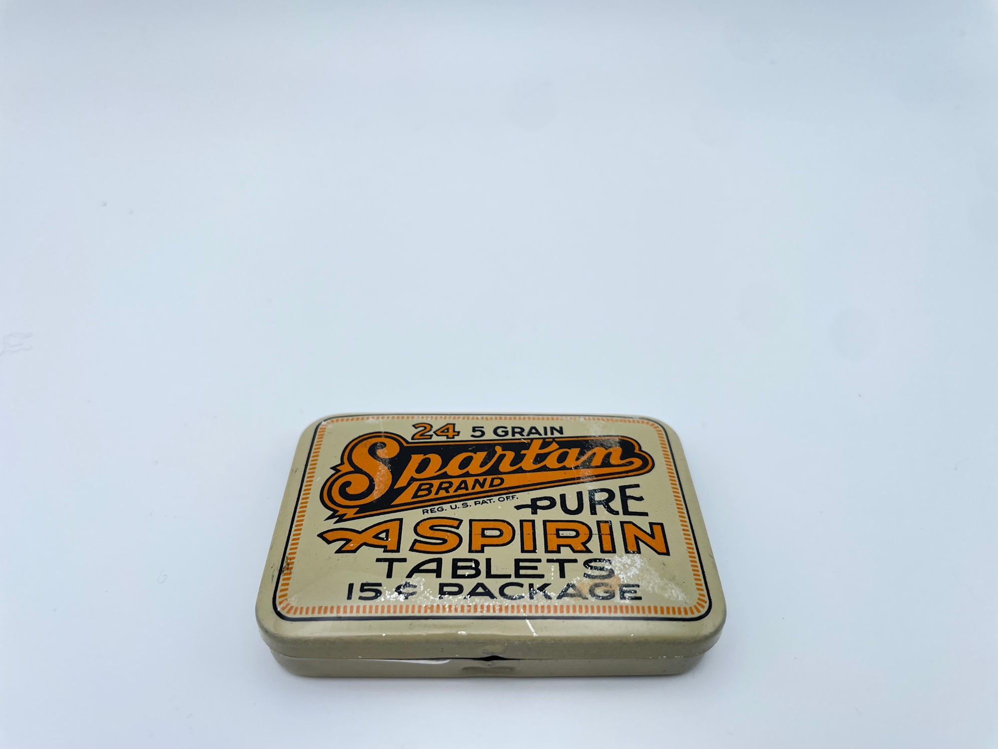 Tiny oil painting of the Tunisian countryside, in a vintage Spartan Aspirin medicine tin, to soothe and comfort the viewer.