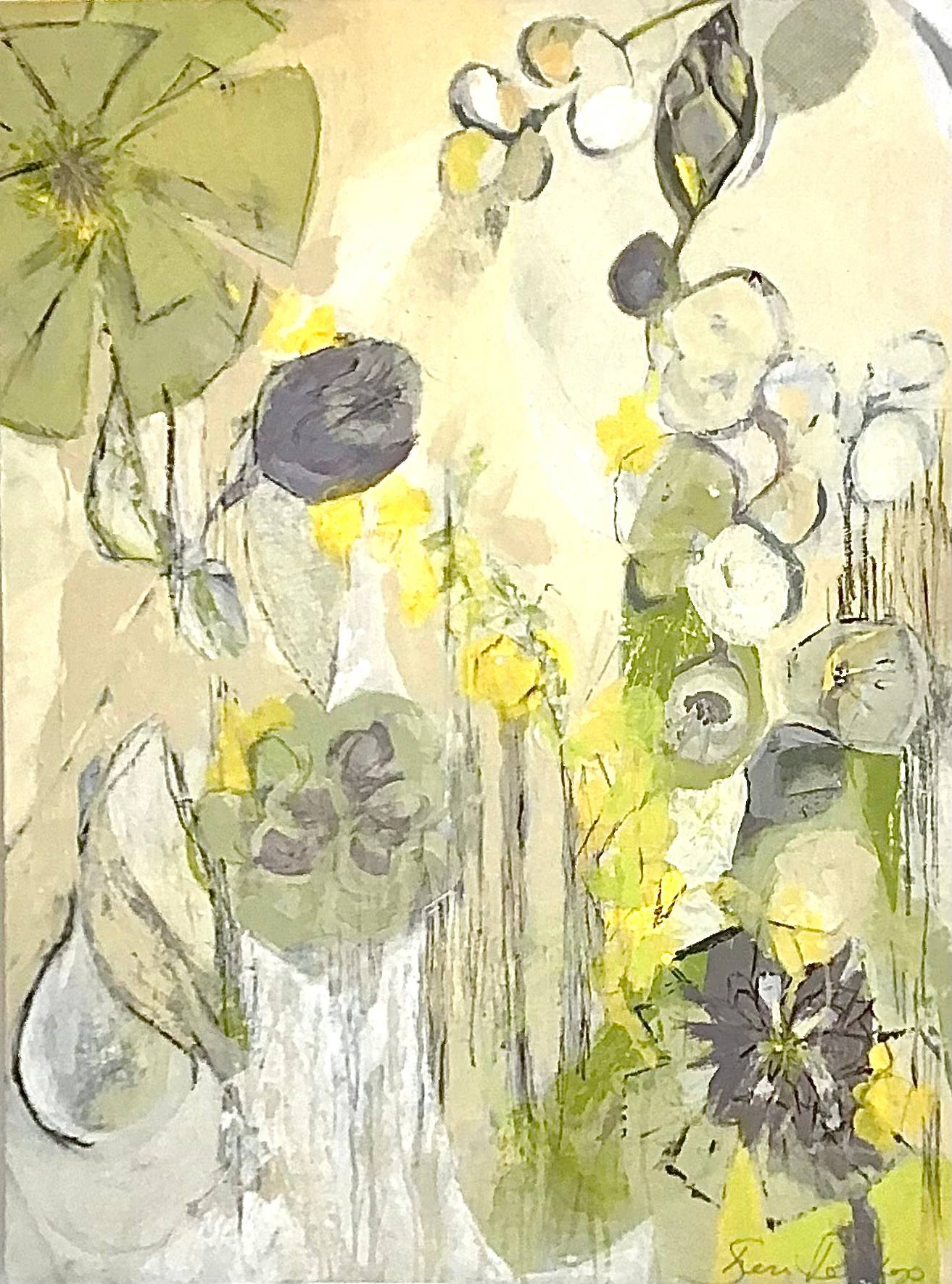 Abstract floral on cradled panel