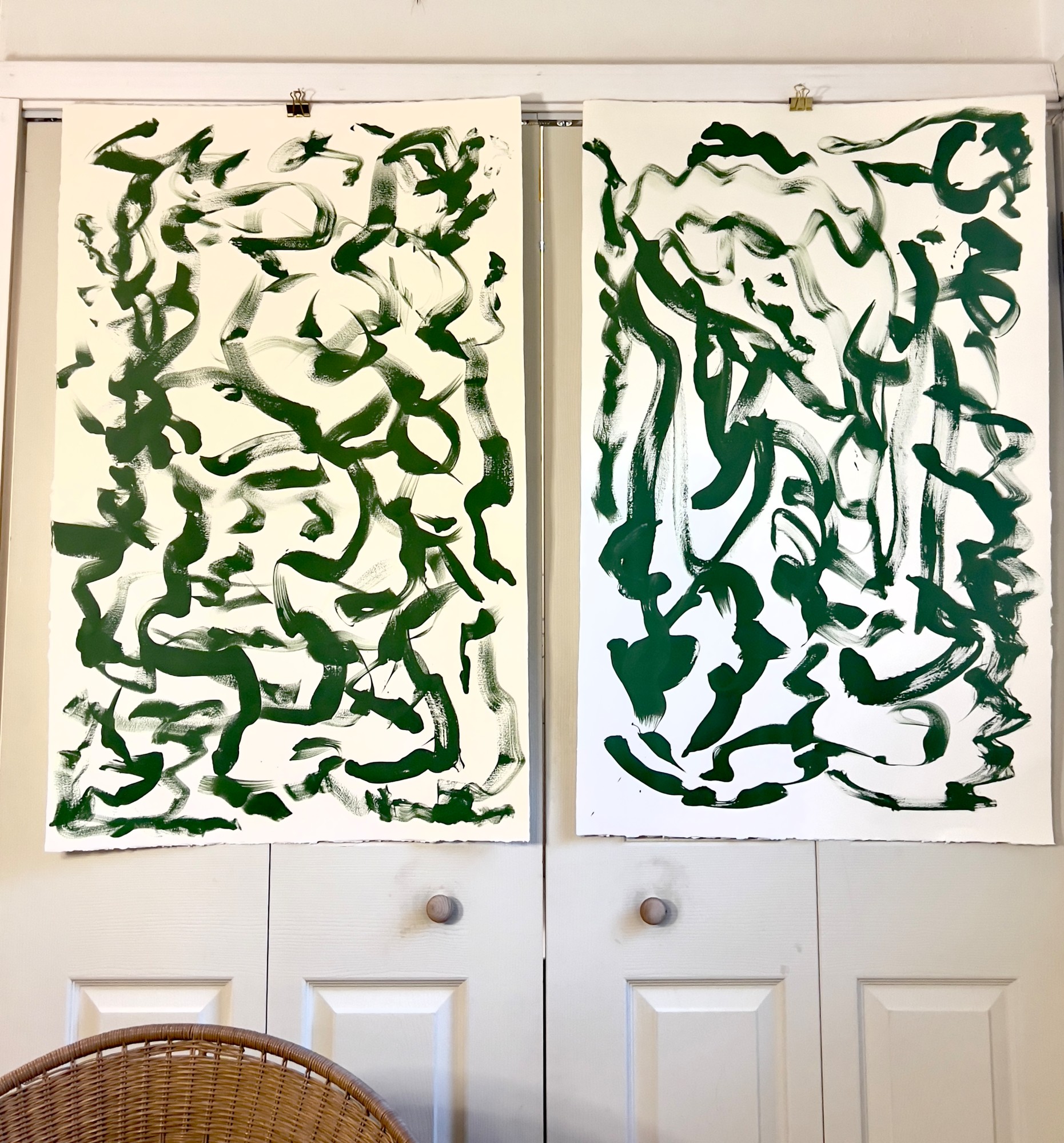 MessageCollect the diptych, two paintings to be hung together, next to each other. Each is 41" x 26" with deckle edge. $7000 for the diptych, $3600 each unframed.