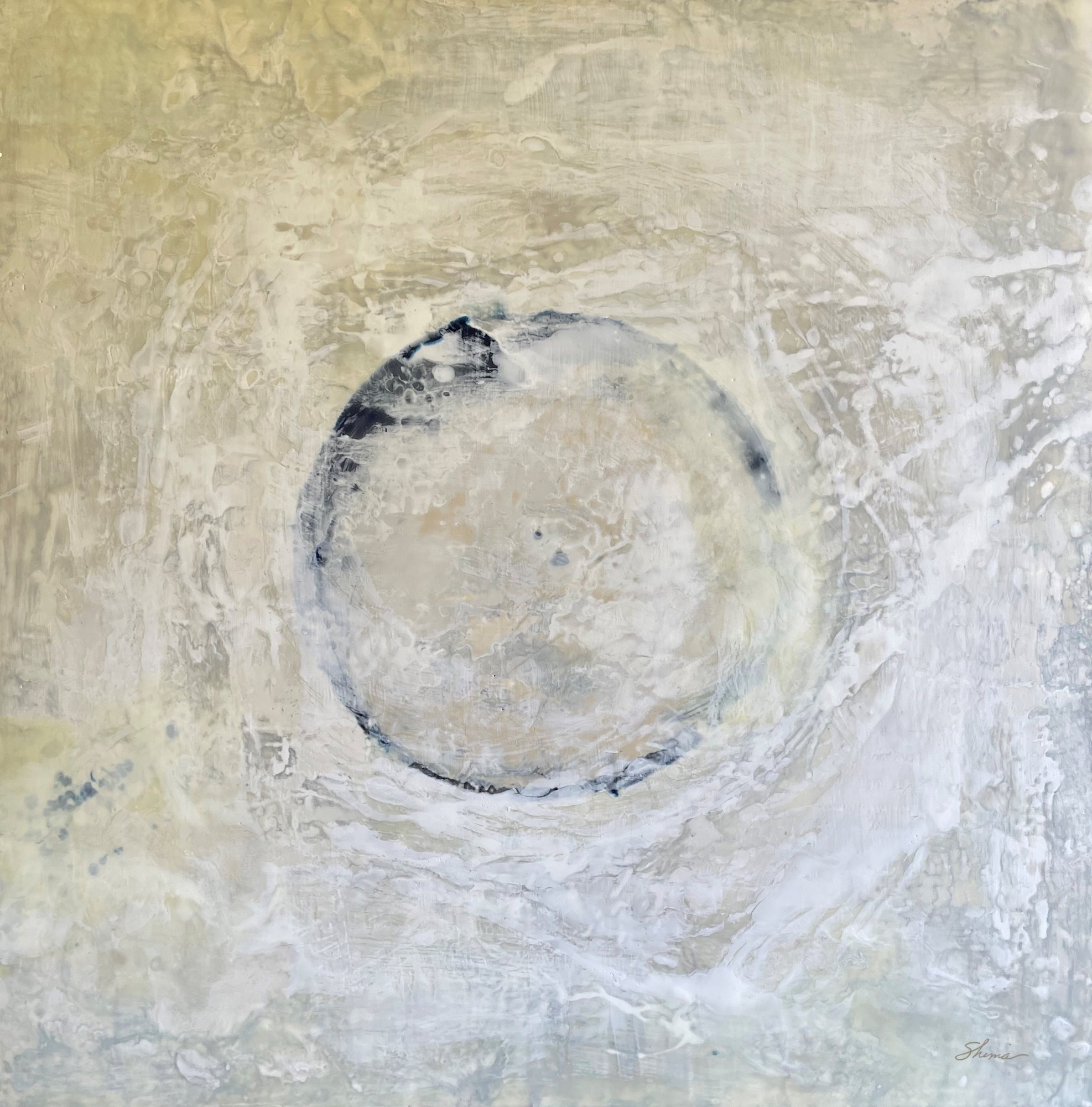 I am enraptured by the simple yet deep essence of this minimal design. I have created four large artworks in this series that can be paired together or purchased individually. I can't wait for the opportunity to create an affordable grouping of 9 or more small 12"x12" paintings where I envision a dreamy cosmic display. Tiny celestial spheres floating in the cosmic background of white-on-white multi-hues. "Moon Shadow" can be paired together with "Earth in Repose" or purchased individually.