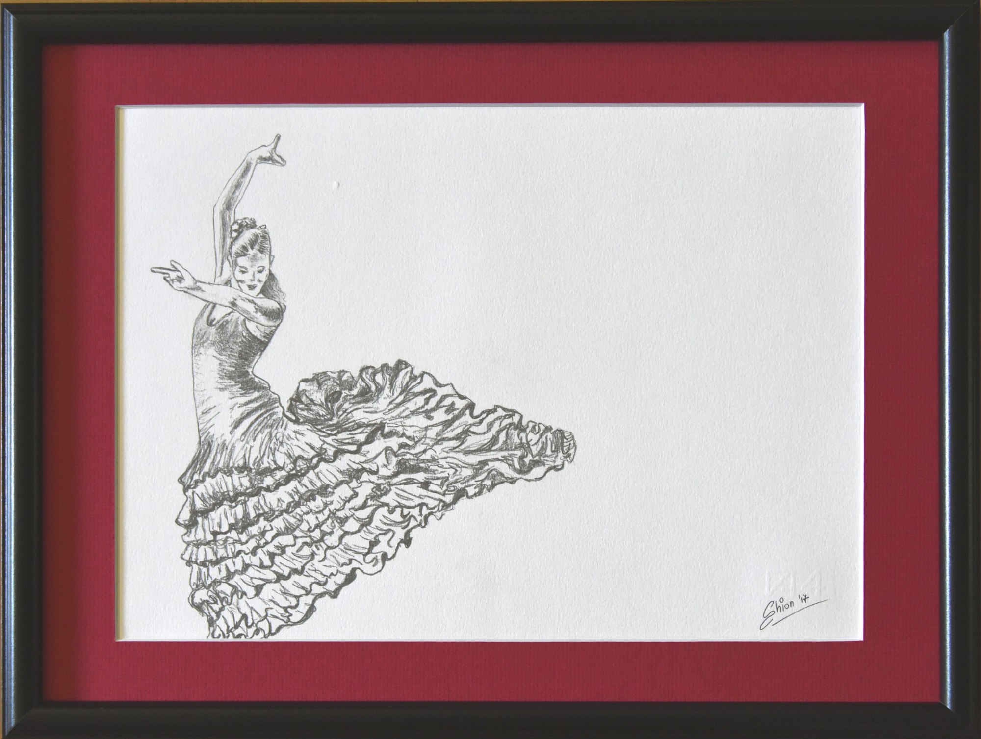 The graphite sketch is ready to hang.