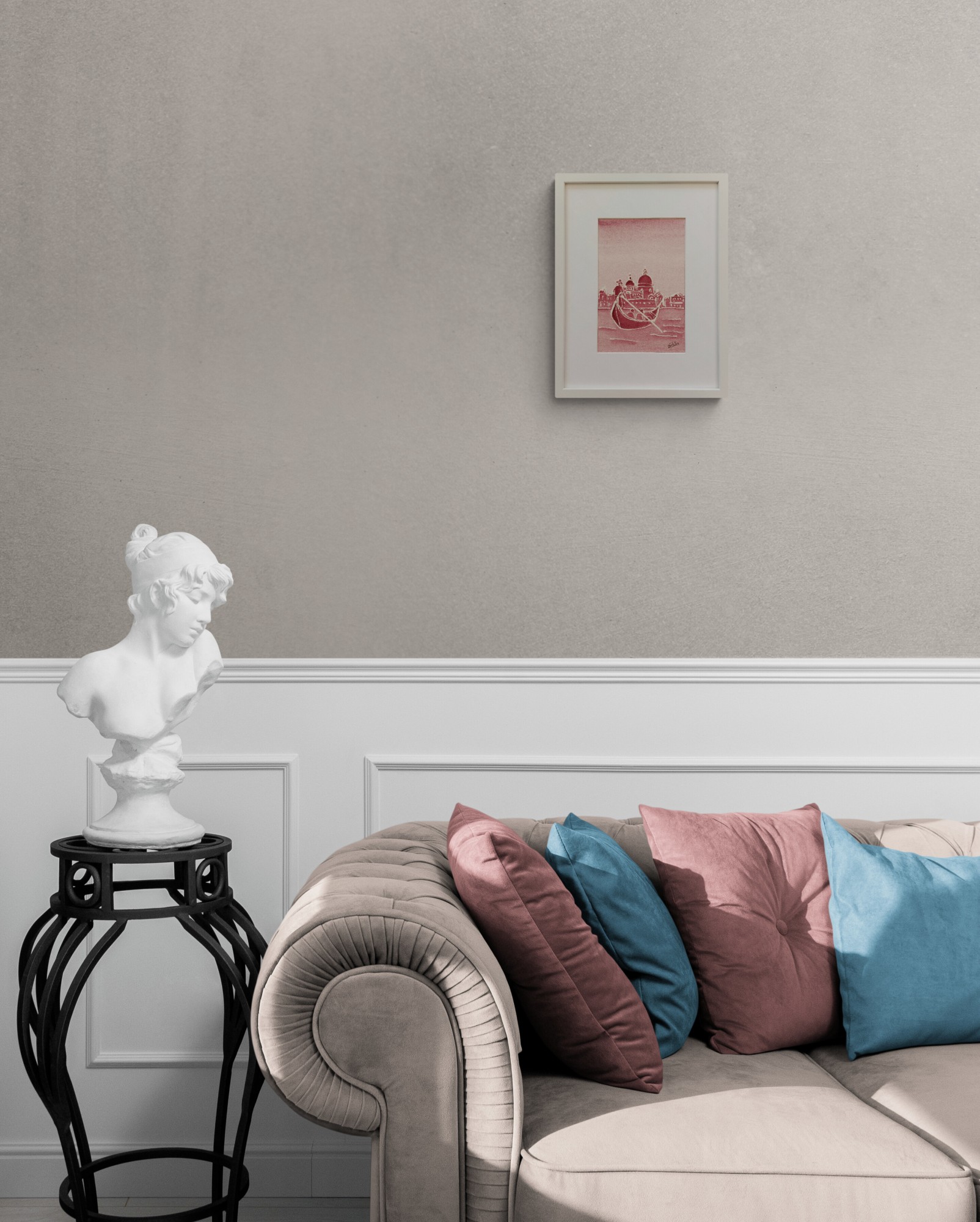 A gondola ride to discover the charm of Venice. Study in bordeaux.