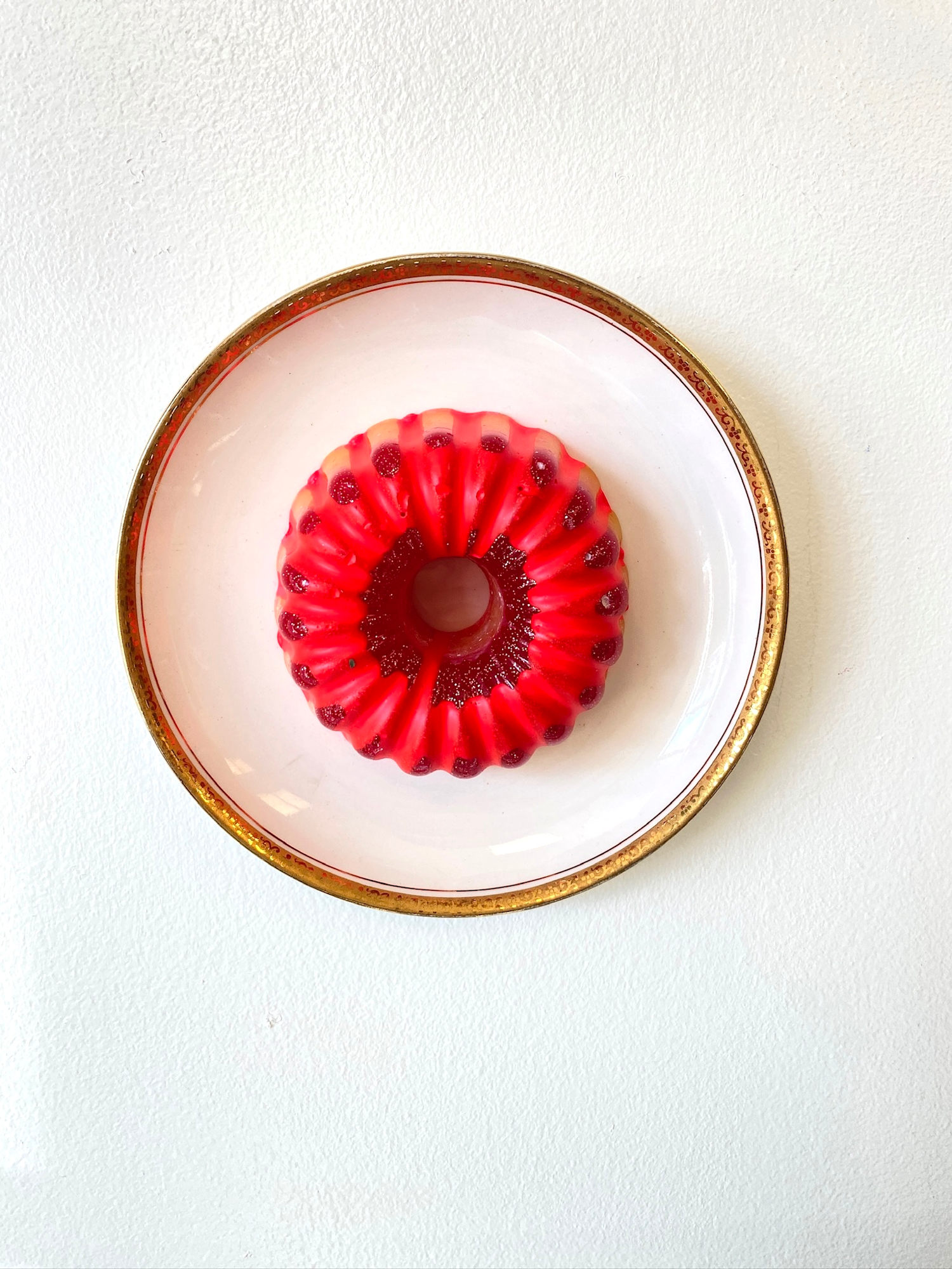 Resin, acrylic and glitter on porcelain plate