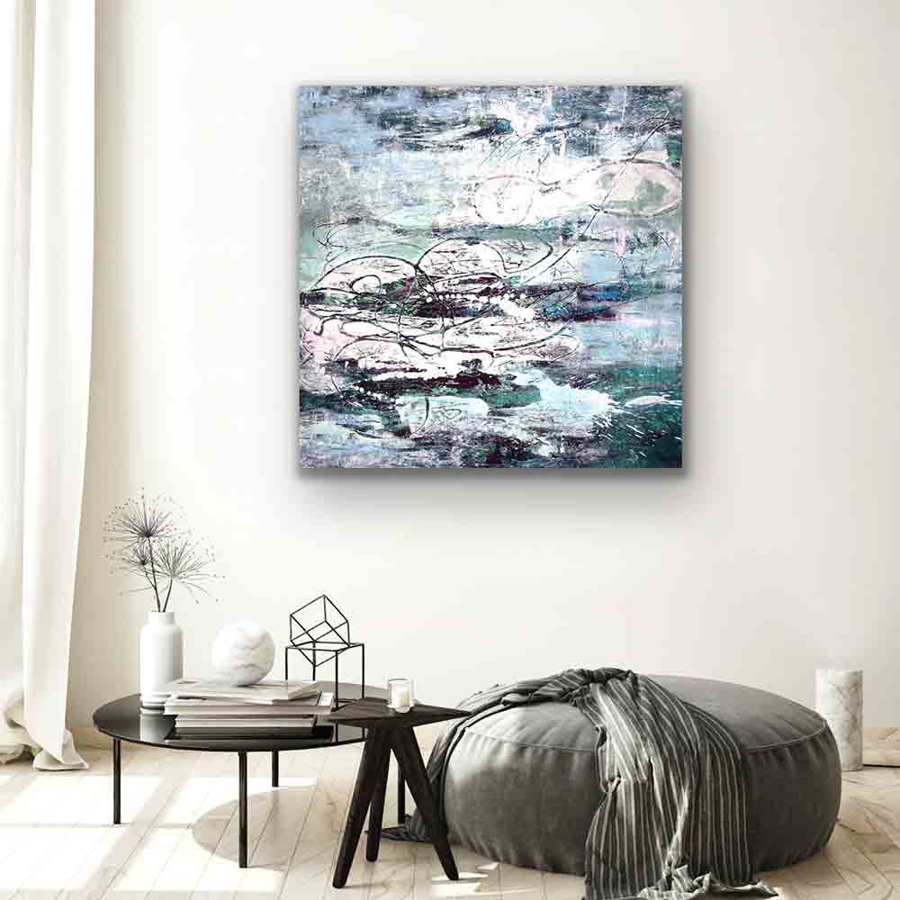 Large Multi layered, gallery wrapped, abstract waterscape on canvas