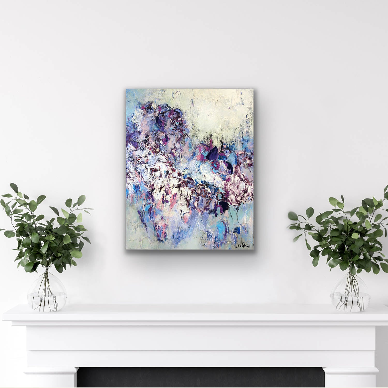 Acrylic on gallery wrapped canvas in blue and violet