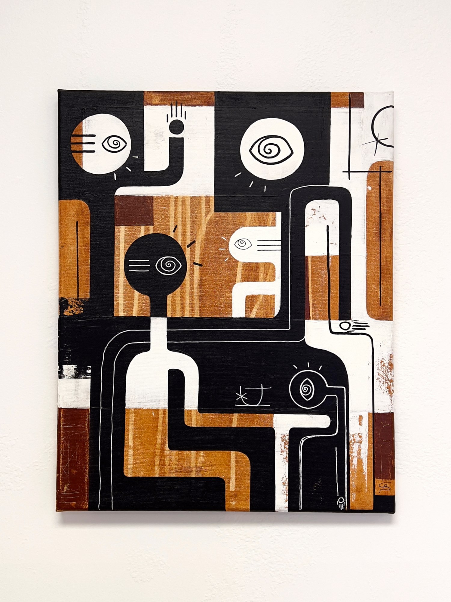 • Signature: Signature on front of canvas. Title, artist name, year and place created written on the back of the canvas