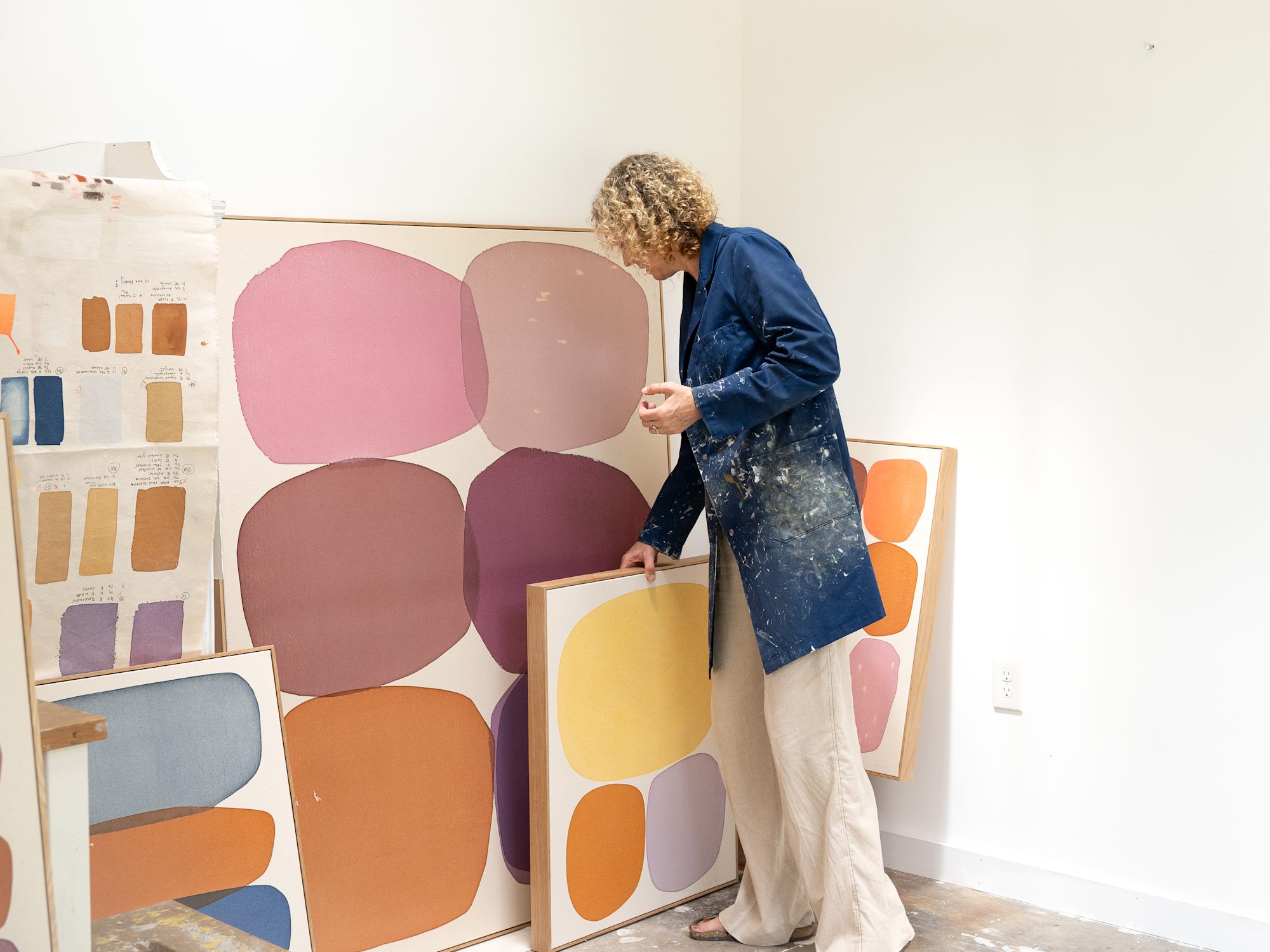 My inspiration for a painting or theme is usually multi-layered and evolving. The initial inspiration, which sparked this series was a collector telling me that she loves the combination of aubergine and ochre - she and her husband were married 35 years ago in Tuscany, and these colors were the theme of the wedding, symbolizing the warm afternoon light on ancient buildings and Italian red wine. The story somehow stuck with me, and that initial inspiration was enriched with my own memories of Tuscany, softened by time, and - on another level - also borne of a need for soothing colors in a time of uncertainty and change.
