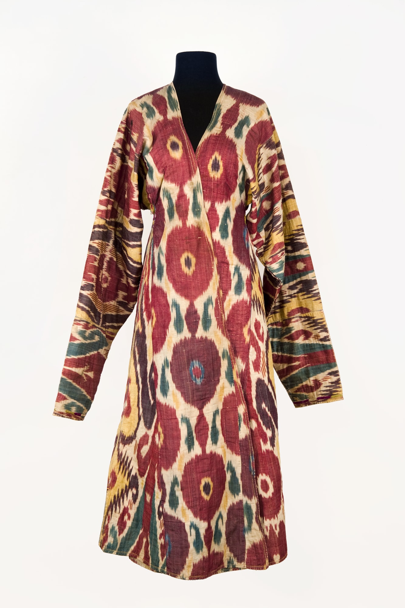 Techniques: Silk ikat velbet lined with cotton tradecloth Culture: Afghani Geographic Location: Central Asia, Afghanistan Credit Line: Gift of Yvonne Porcella
