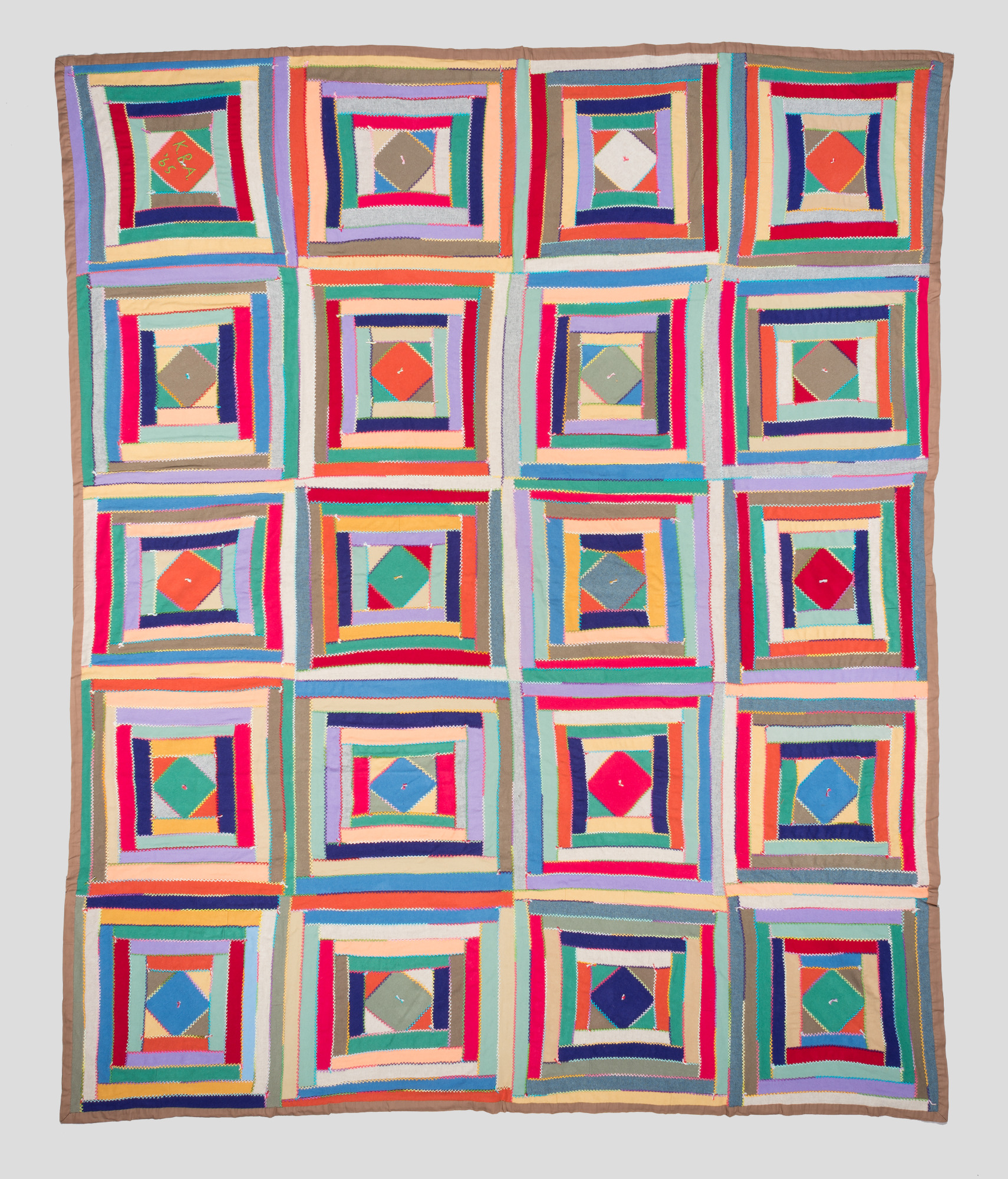 Techniques: machine pieced, herringbone embroidery, hand tied