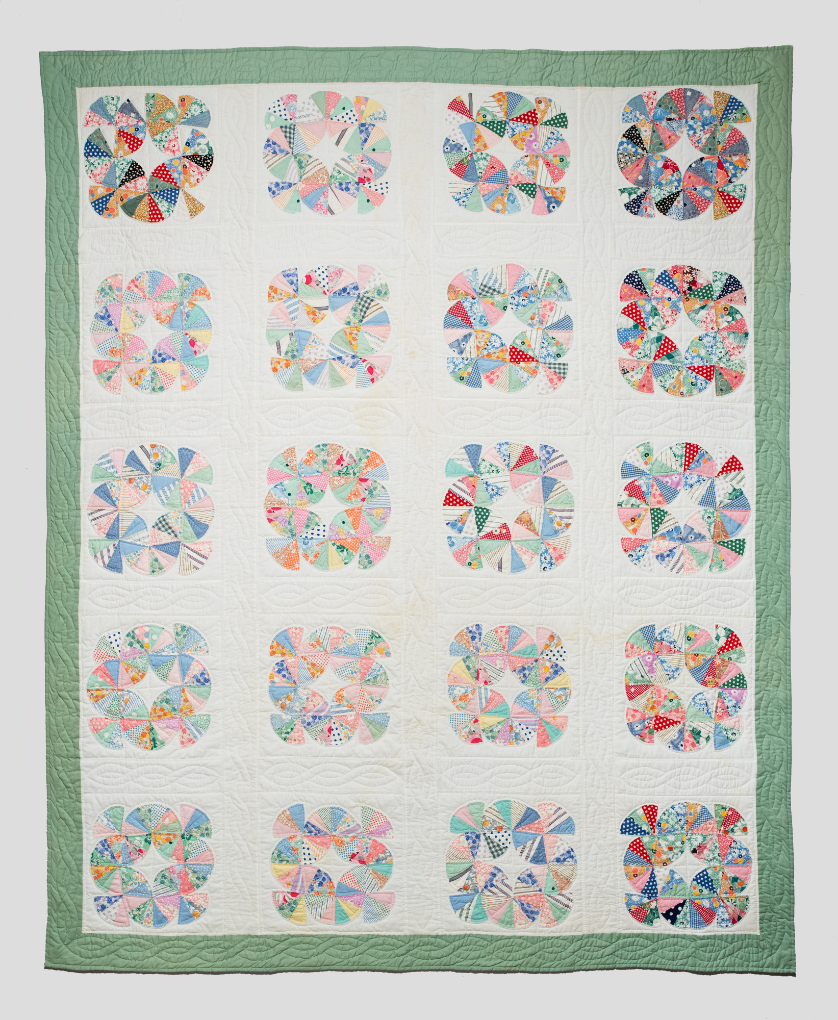 This quilt top was made in 1920 on a farm near Lehr, North Dakota. Five sisters of the George family, Martha, Alma, Pauline, Katherine, Violet and their step-mother worked on it as a family project.