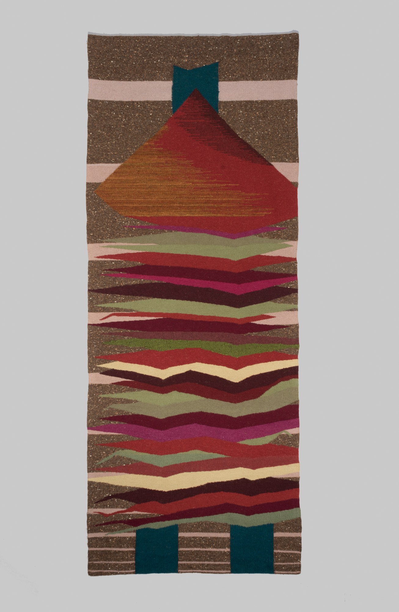 Prayer Rug is a spiritual piece, suggesting both the ritual of kneeling for the daily prayer and also an imagined sanctuary towering up to the heavens above. Weaving this was the artist's prayer for peace, security and compassion for humankind.