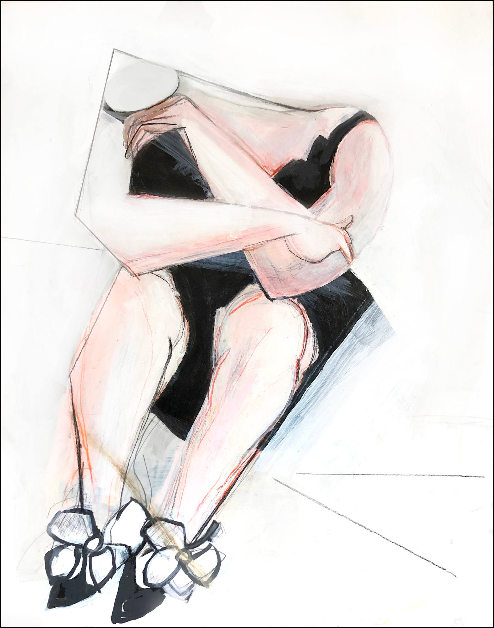 - Pigment oil stick, house paint, soft charcoal on archival paper