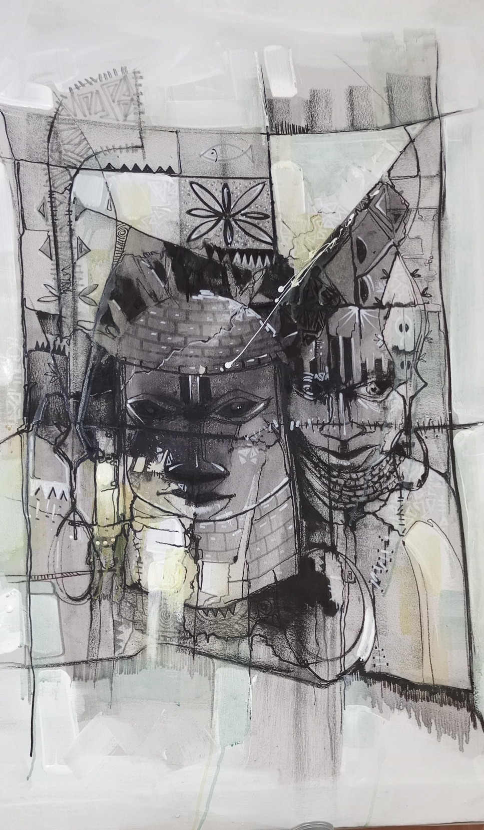 Charcoal and pen on canvas
