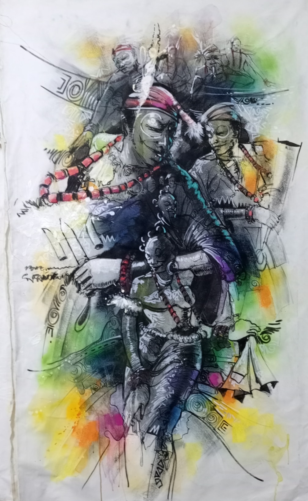 Igbo men and women dancing their traditional cultural dance and playing their musical instruments