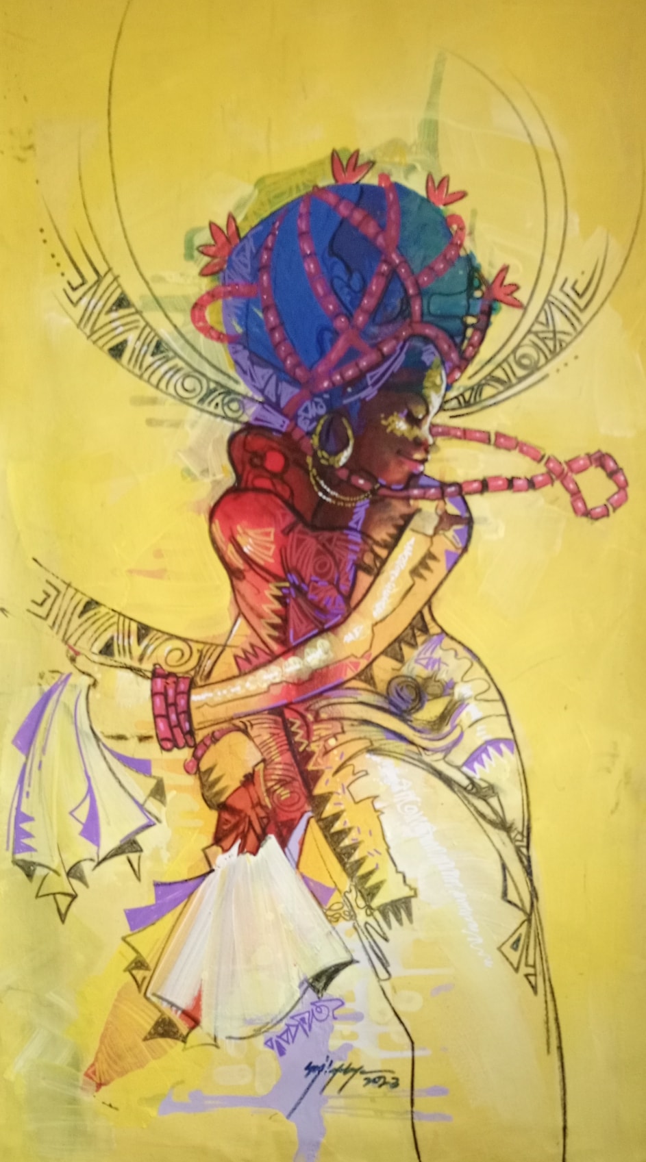A royal queen in her queen with her beautiful royalty custom performing her igbo dance as she present herself before her king