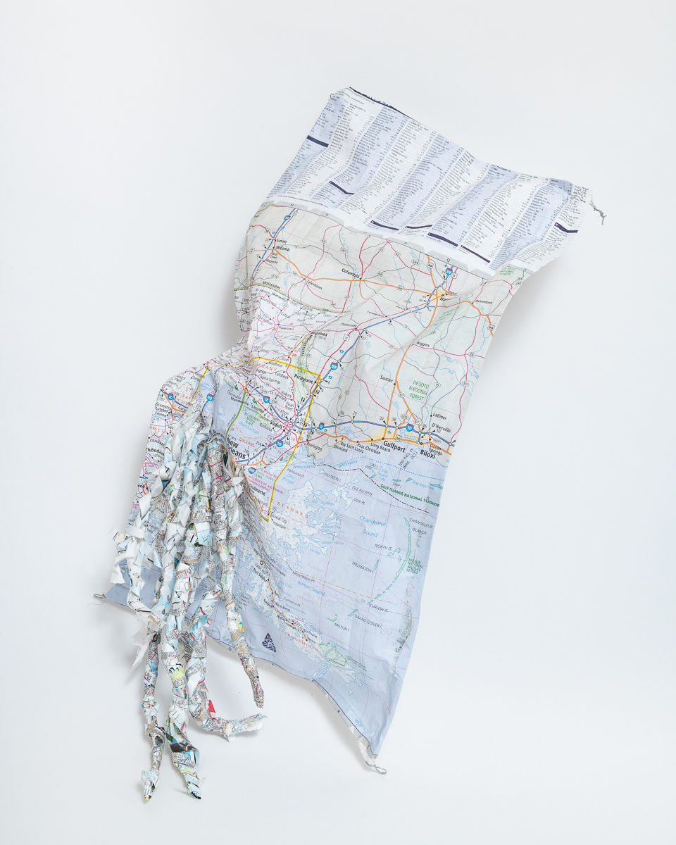 The map is something to be dreaded as it is the tool of the coloniser mapping to take territories. Dreading, as in dreadlocking or braiding and plaiting the map, is a way to smash some key problematic premise of the map.