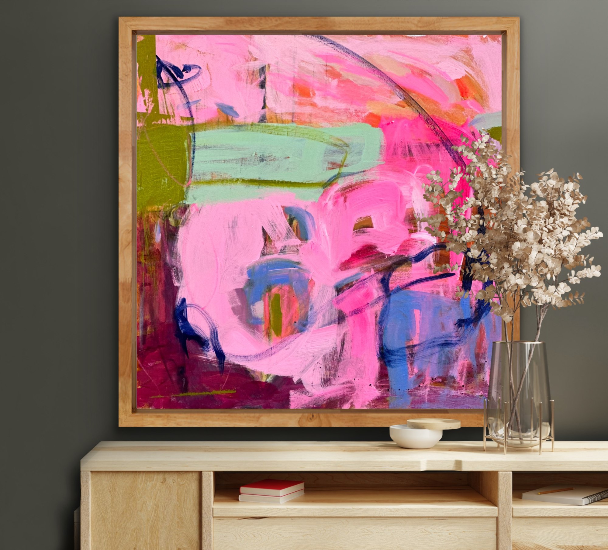 Abstract on gallery wrap, with high gloss varnish, sides painted white with matte varnish
