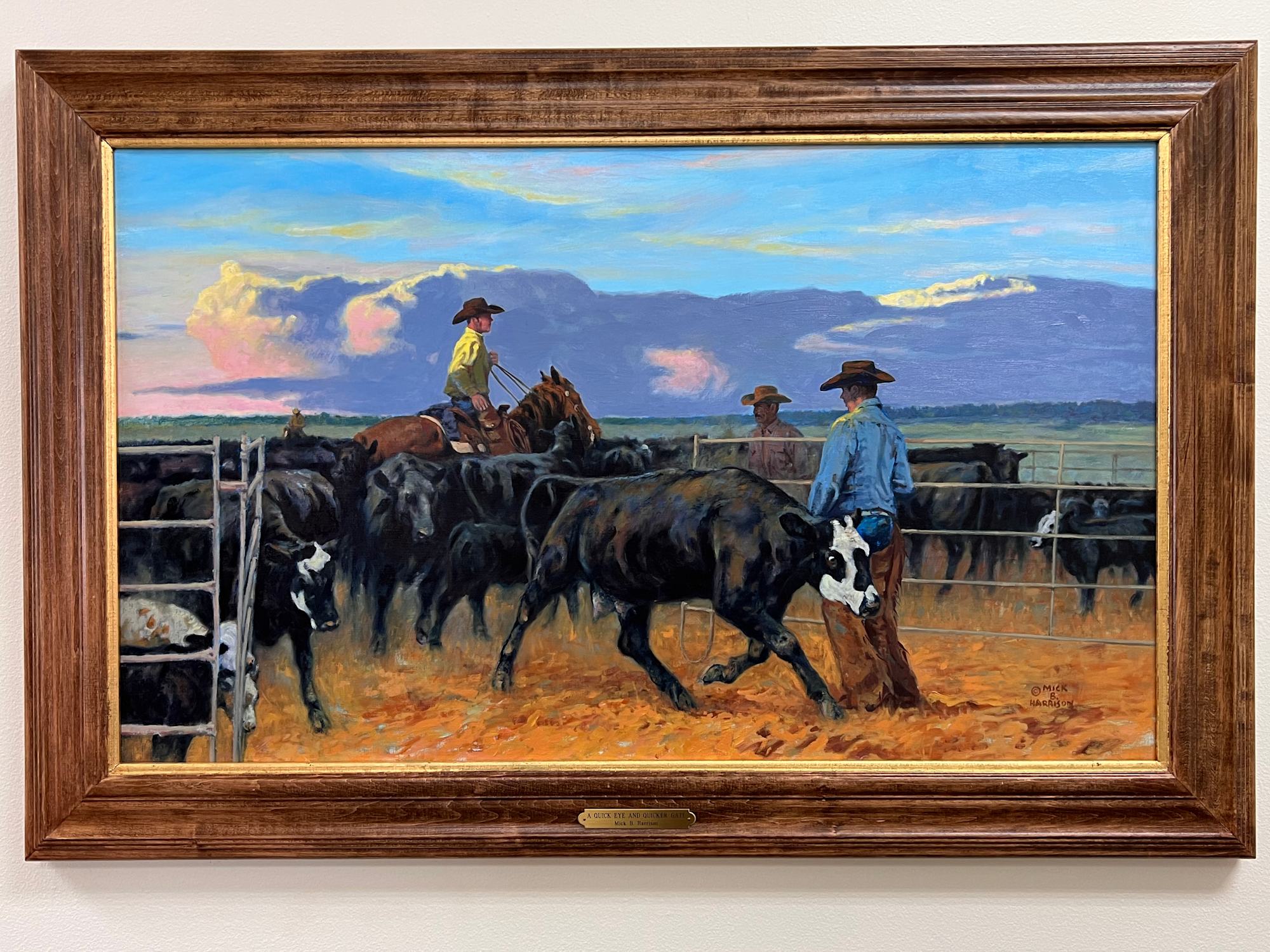 Mick Harrison is a Vietnam veteran and a full-time, self-taught fine artist since 1974. Working primarily in oils and acrylic gouache in the 1920-1940s American Golden Age of Illustration style, he captures the ruggedness of the plains, the beauty of the Black Hills, and the powerful spirit of the Western life. His subjects are drawn from his upbringing that included riding bulls and bareback horses in high school rodeo finals. He spent time on his grandfather’s ranch near Mobridge, SD, an area once inhabited by Sitting Bull, Chief Gall, Matador Land & Cattle Co., and Diamond A Cattle Co. Mick is also known for his calendars, rodeo posters, book covers, and illustrations, and 30 years of magazine artwork for True West, Old West, and Frontier Times.