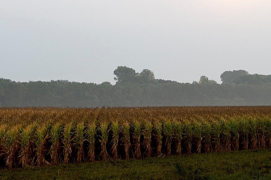 Below the Bluff by Joseph Night  Image: “I remain convinced that our wonderful technologies remain dwarfed by the cultural significance of row crop farming. Cell phones and text messages won't feed the world. South Dakota feeds a lot of food to a lot of people through our farming. These fields also form beautiful patterns in the earth, like large-scale drawings.”