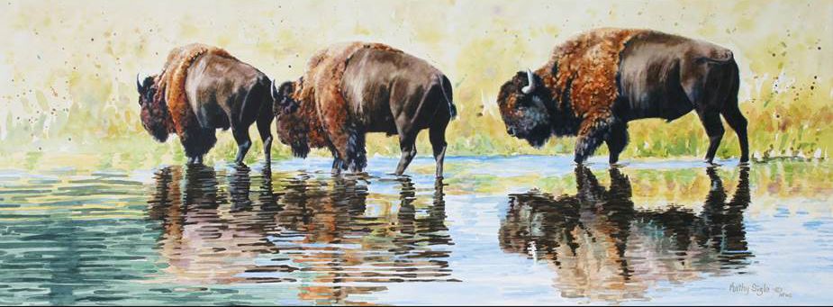 “An enjoyable part of my career is gathering the reference material out at real working ranches and wildlife areas. I want to capture the Western way of life, to paint and portray the real thing. Bison once freely roamed the Great Plains of North America. In 1905 the American Bison Society was formed with Theodore Roosevelt as honorary president. Roosevelt persuaded Congress to establish several wildlife preserves. The bison, more than any other animal, is a unique symbol of the strength of the people of North America.”