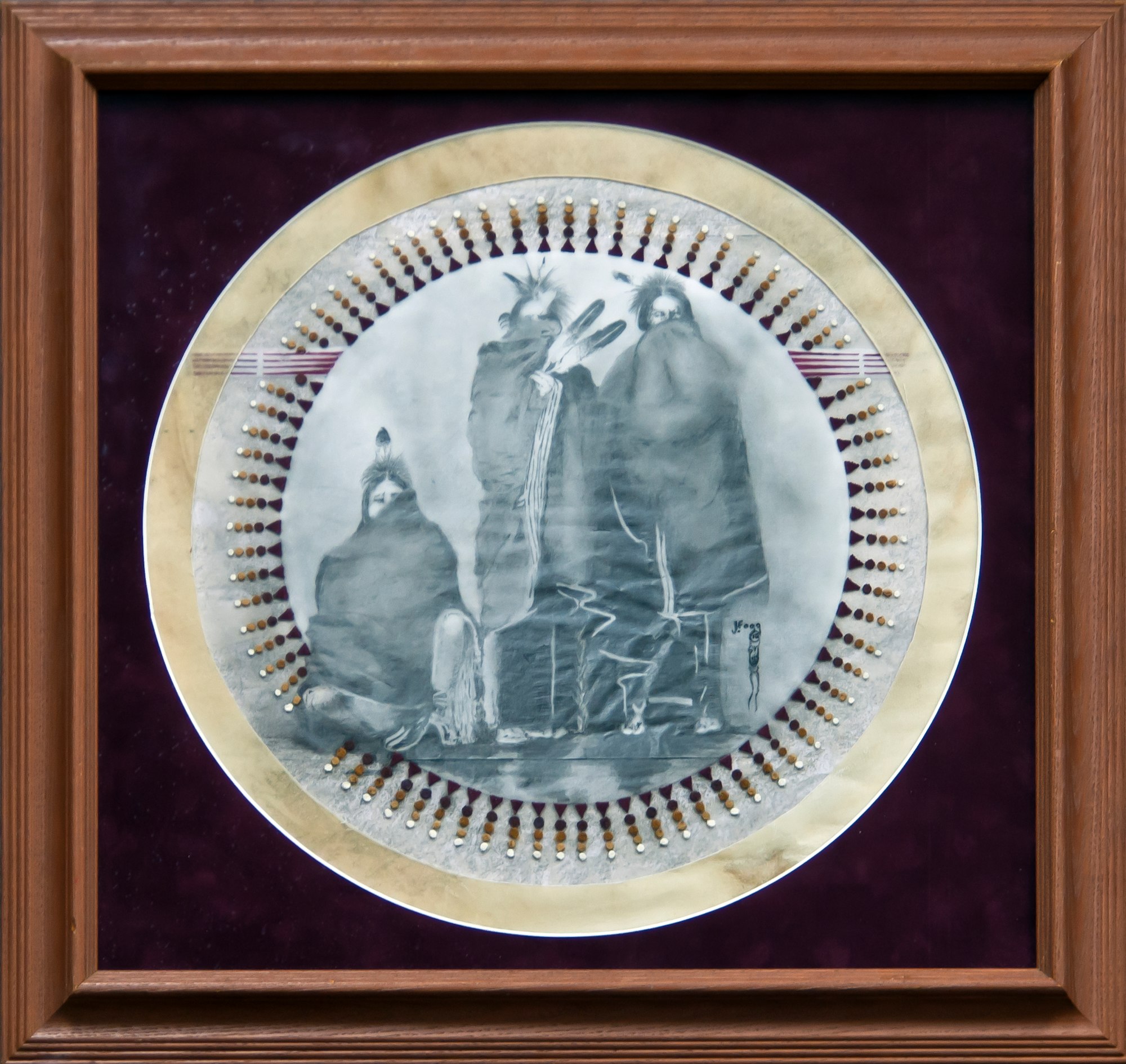 - Subject Matter: Four Native Americans with feathers in a historical setting wearing blankets covering part of their faces