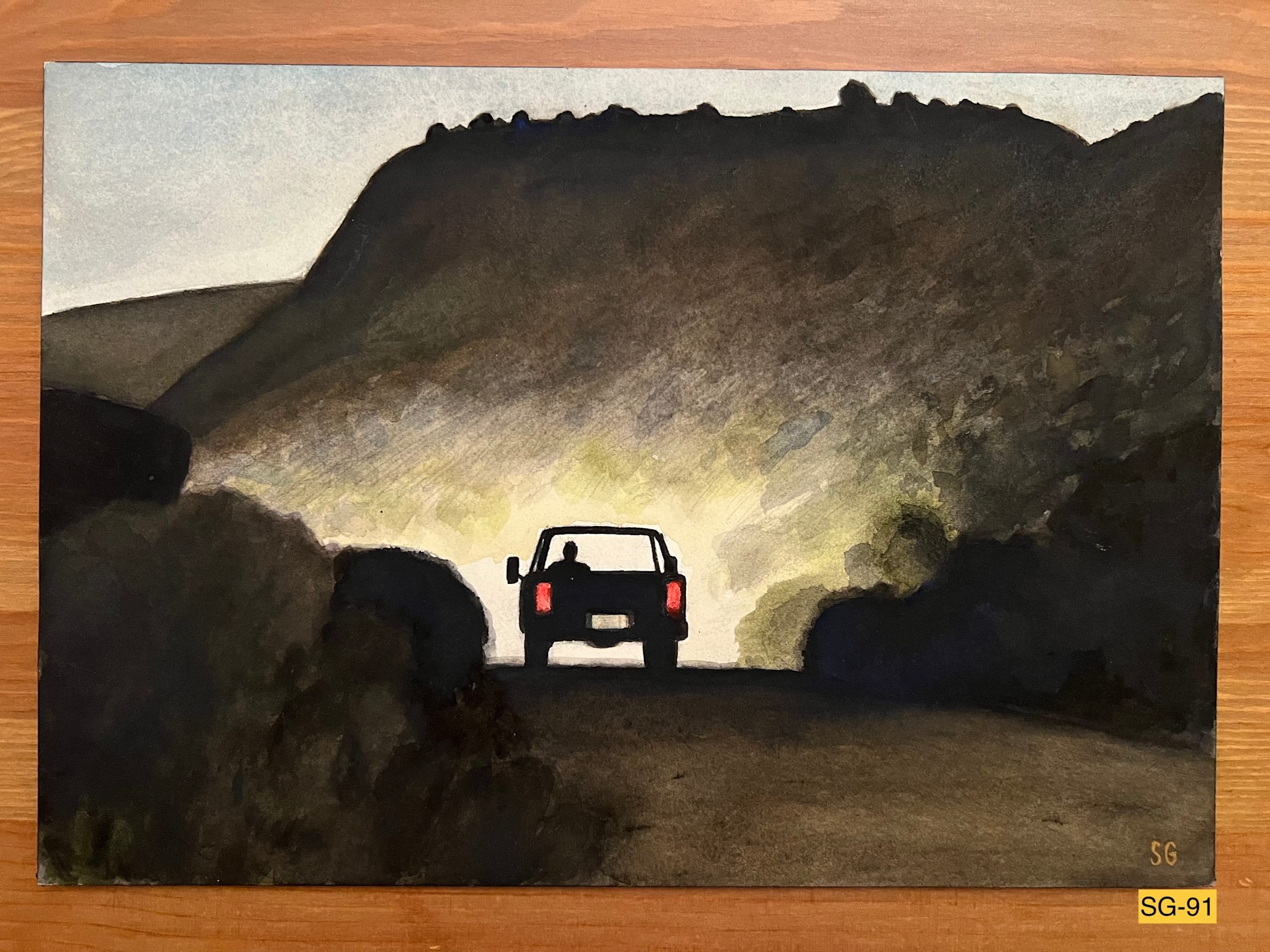 A Truck in Rio Pueblo Gorge at Night. SW of Taos, NM.