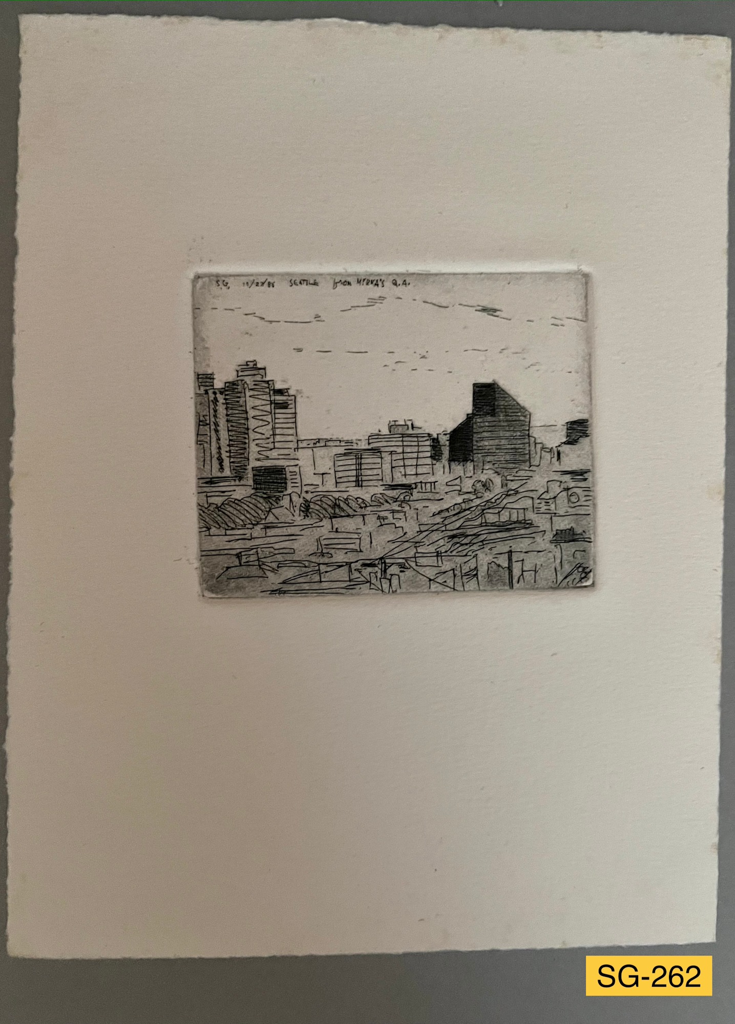 - From Downtown, from Myrna's, on Queen Anne Hill etching