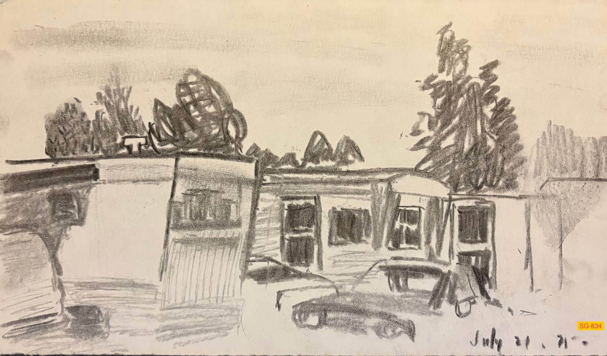 Kathy-O Trailer Park in storied Spenard neighborhood of Anchorage, Alaska. This was the view from the artist's mobile home, where he lived for ten years, 1974-1984.
